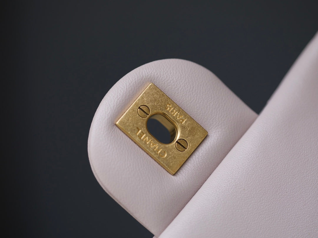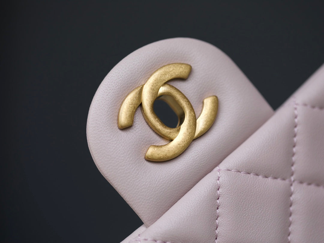 MINI RECTANGLE FLAP BAG 20CM LIGHT PINK LAMBSKIN GOLD HARDWARE