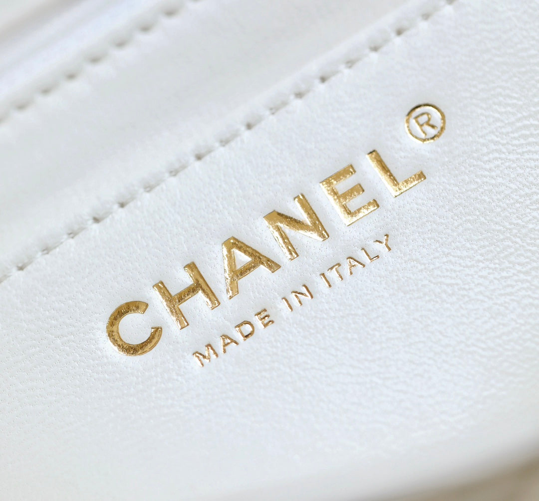 MINI RECTANGLE FLAP BAG TOP HANDLE 20CM WHITE LAMBSKIN SILVER HARDWARE