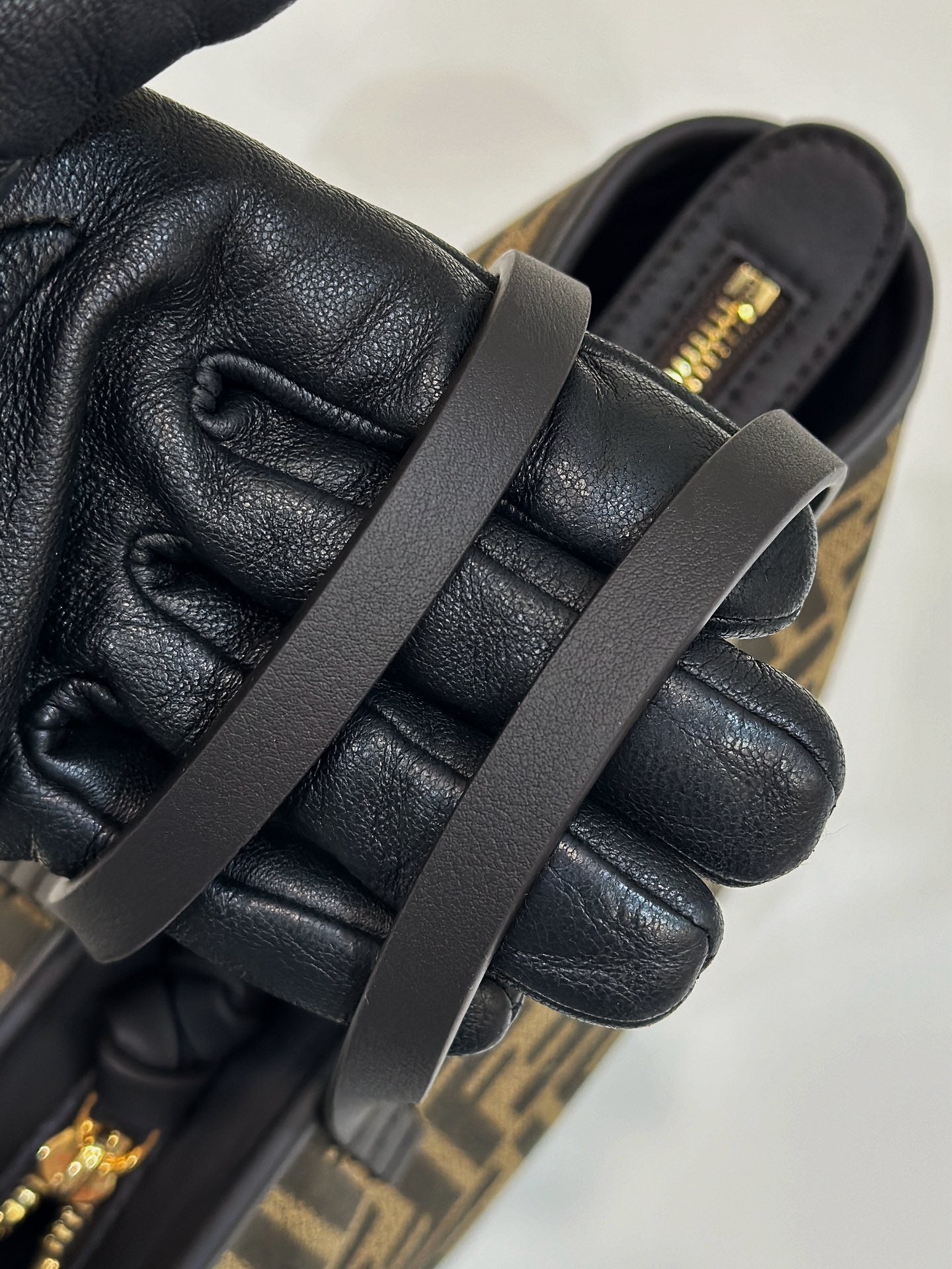 MINI ROLL BAG 15 BLACK MIX BROWN FF JACQUARD FABRIC