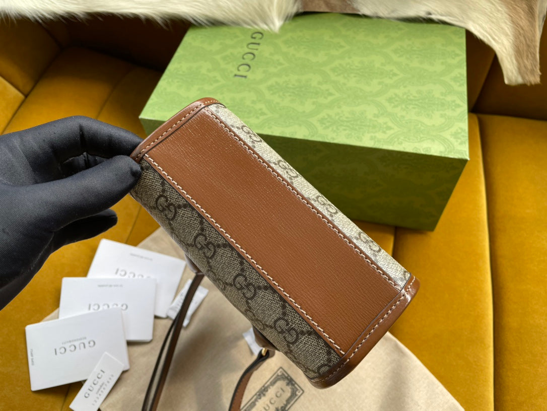 MINI TOTE 20 BAG IN BEIGE CANVAS AND BROWN CALFSKIN