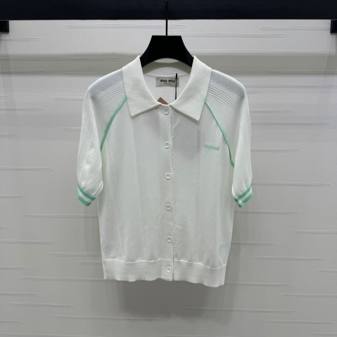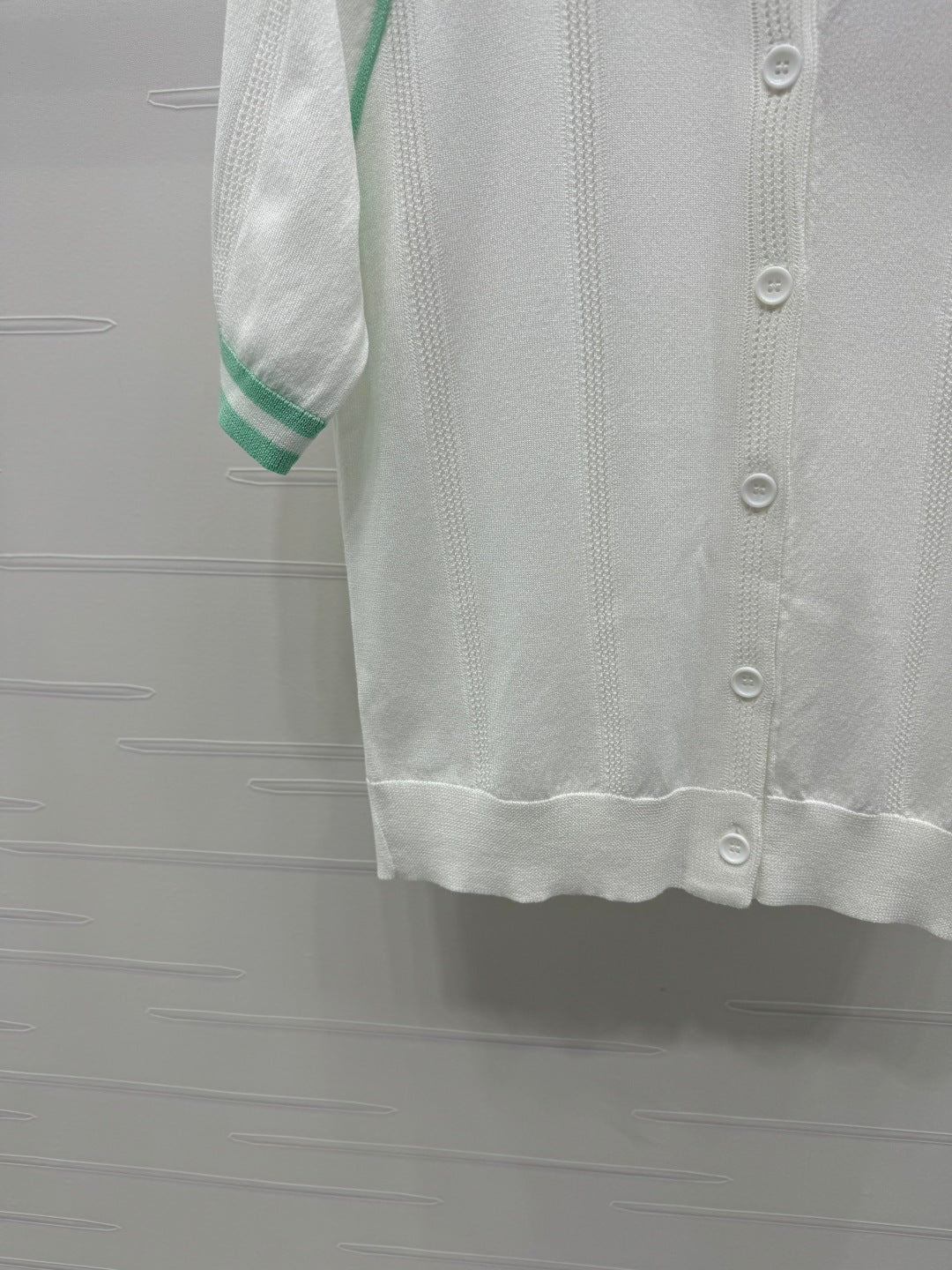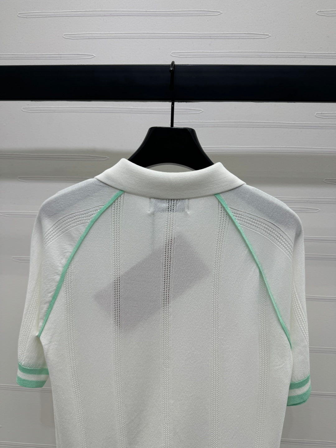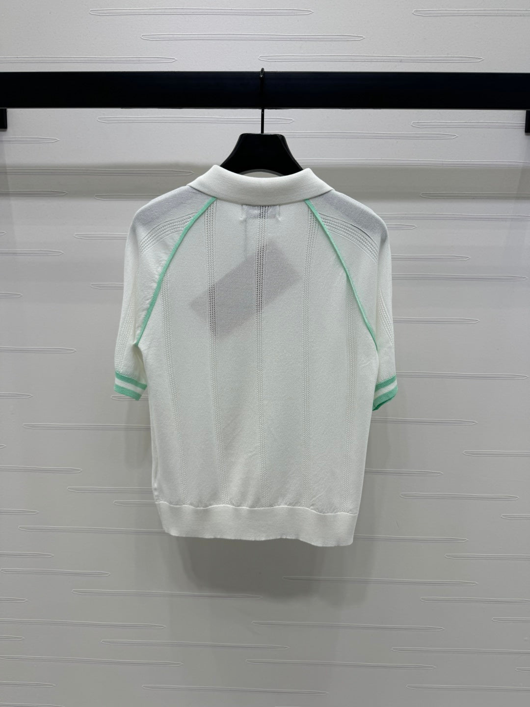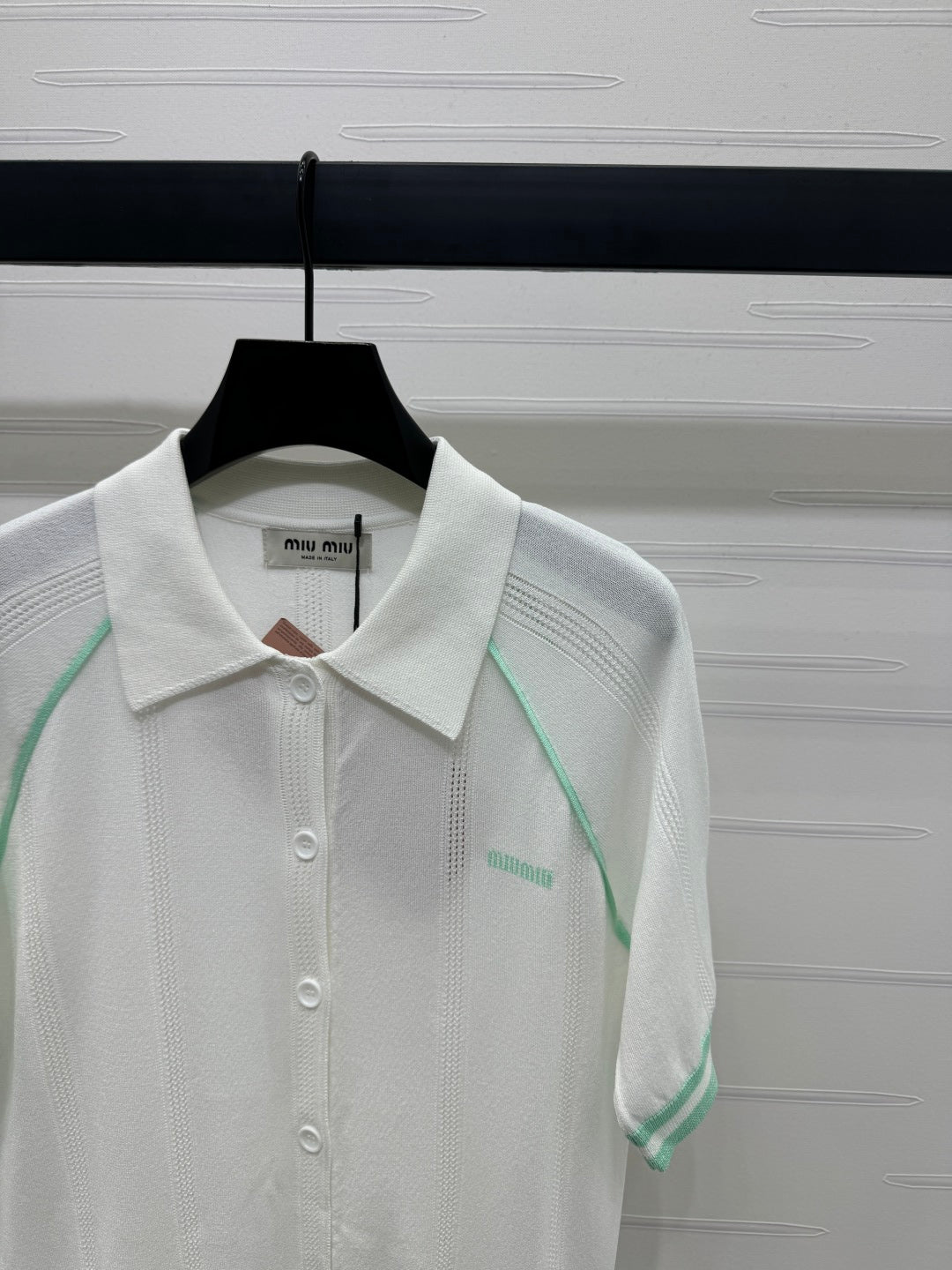 MIU 25S ROUND NECK STRIPED KNIT RAGLAN SHORT SLEEVES 264108