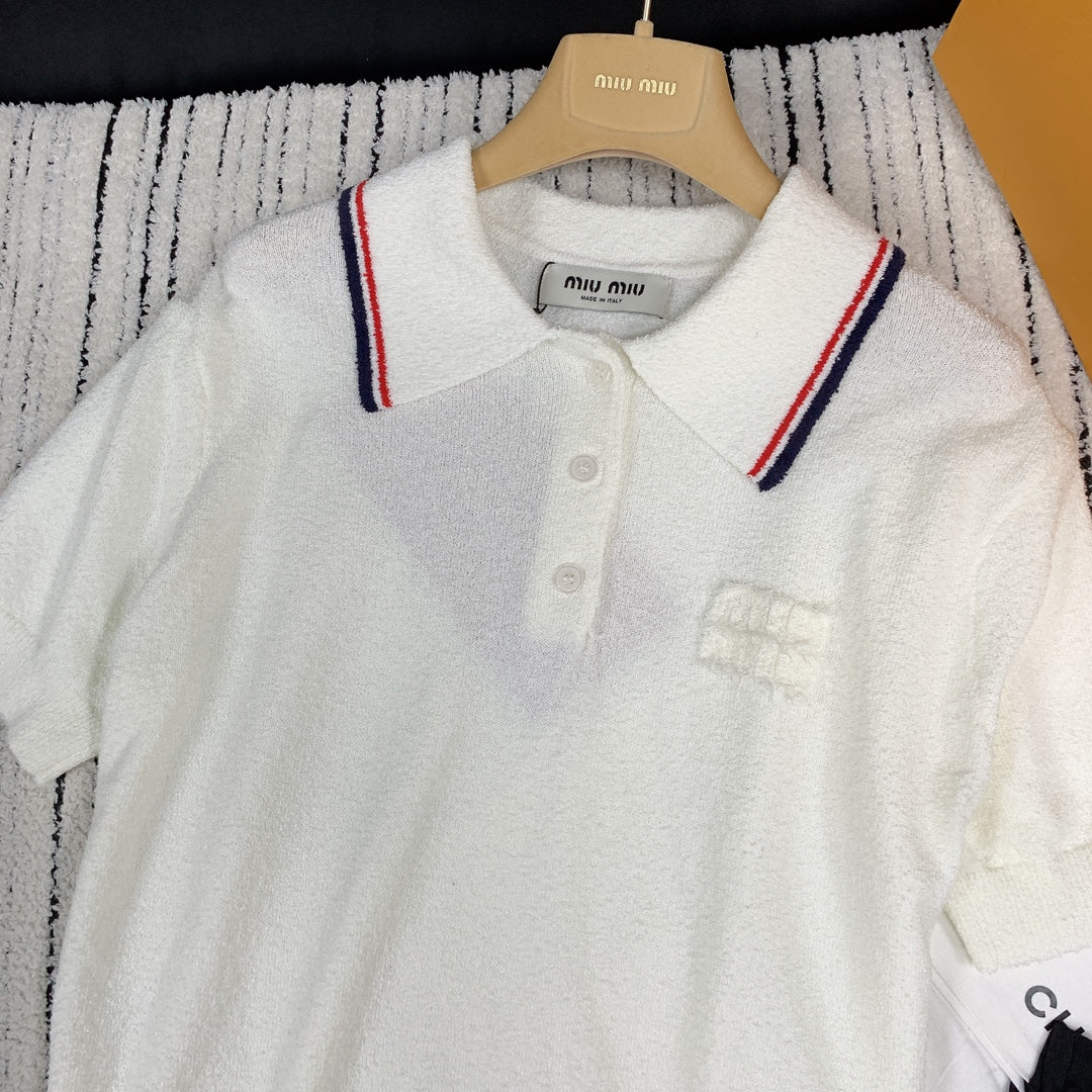 MIUMIU BUTTON-UP KNIT SWEATER WITH LAPEL COLLAR 268101