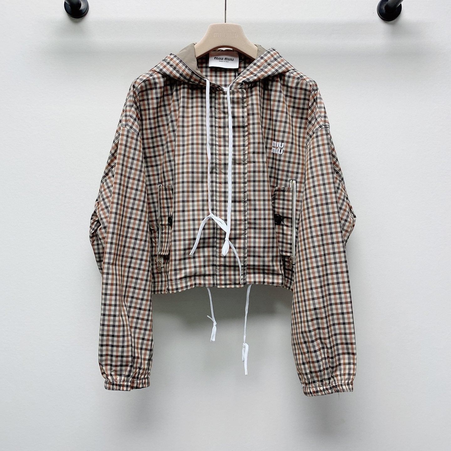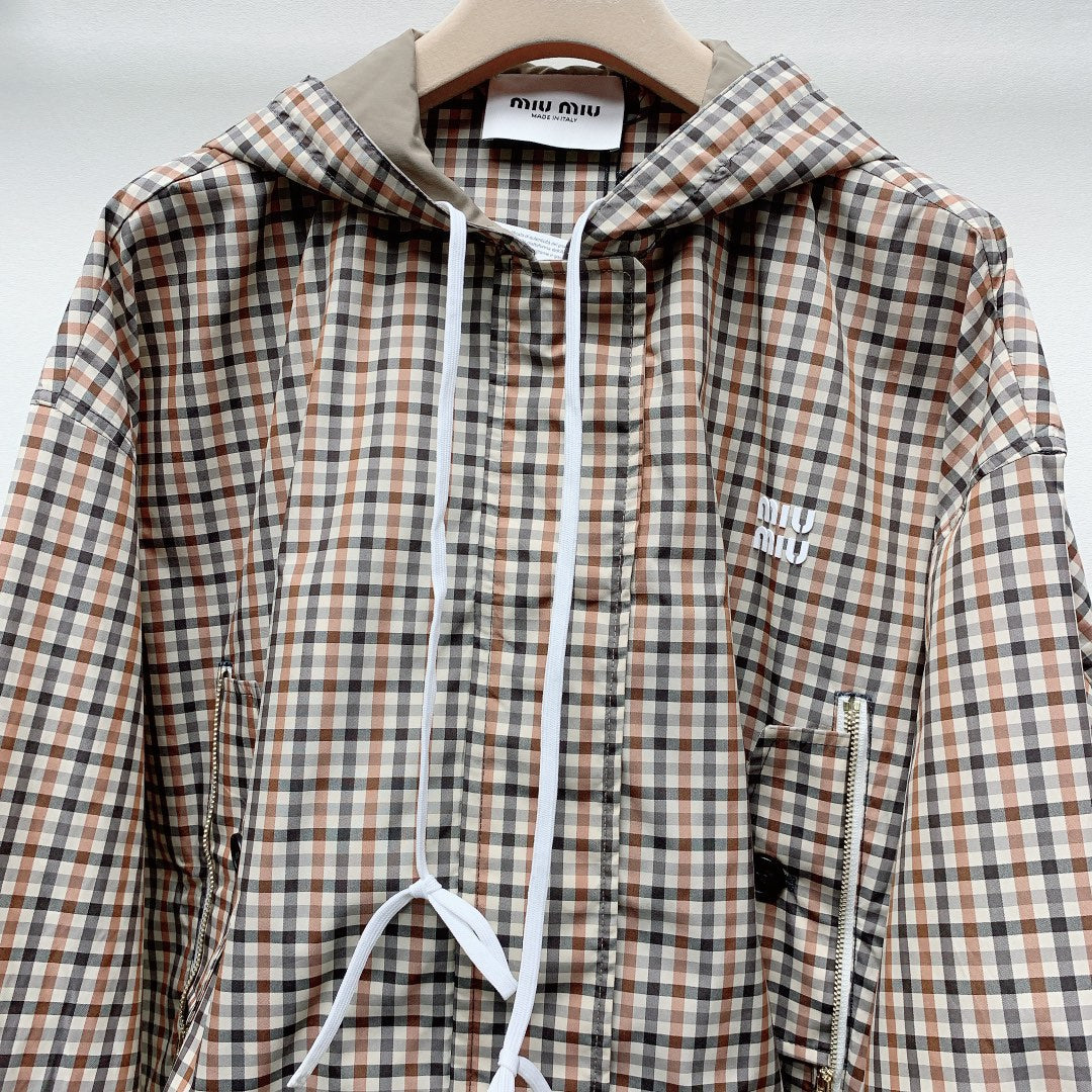 MIUMIU PLAID HOODED JACKET 228063