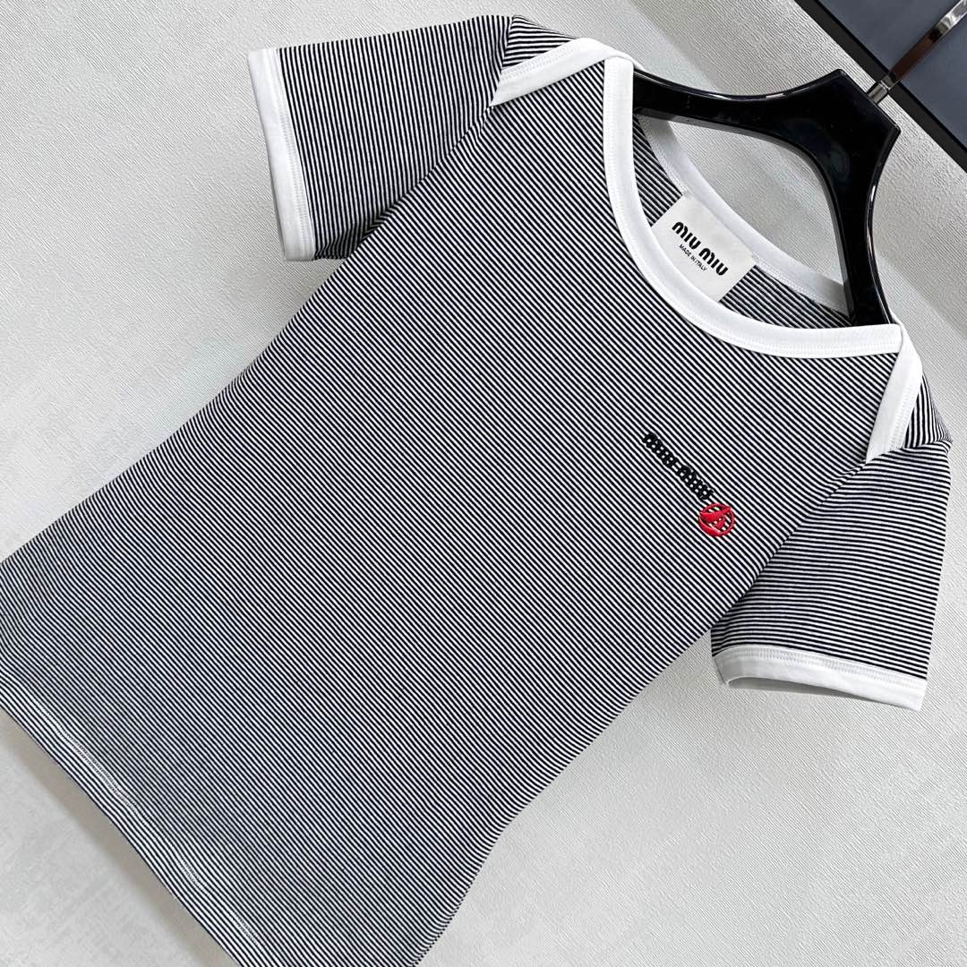 MIUMIU SHORT-SLEEVE STRIPED T-SHIRT 267829