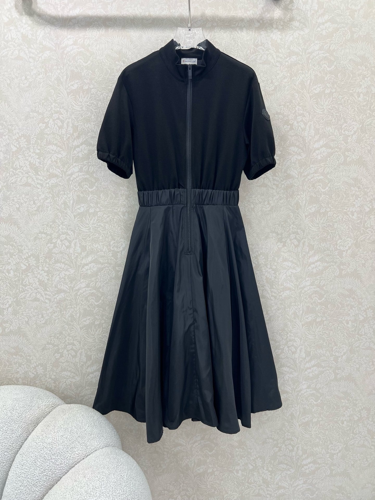 MONCLER SHORT-SLEEVE LONG DRESS WITH STAND COLLAR 275248