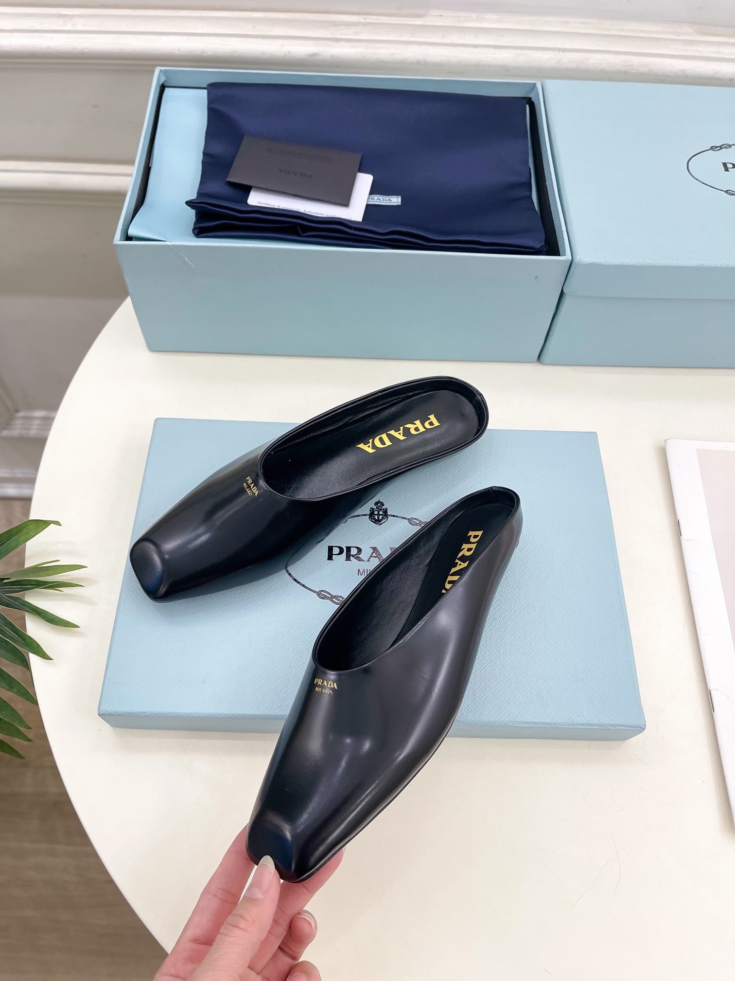 MULES SQUARE TOE IN BLACK SMOOTH LAMBSKIN