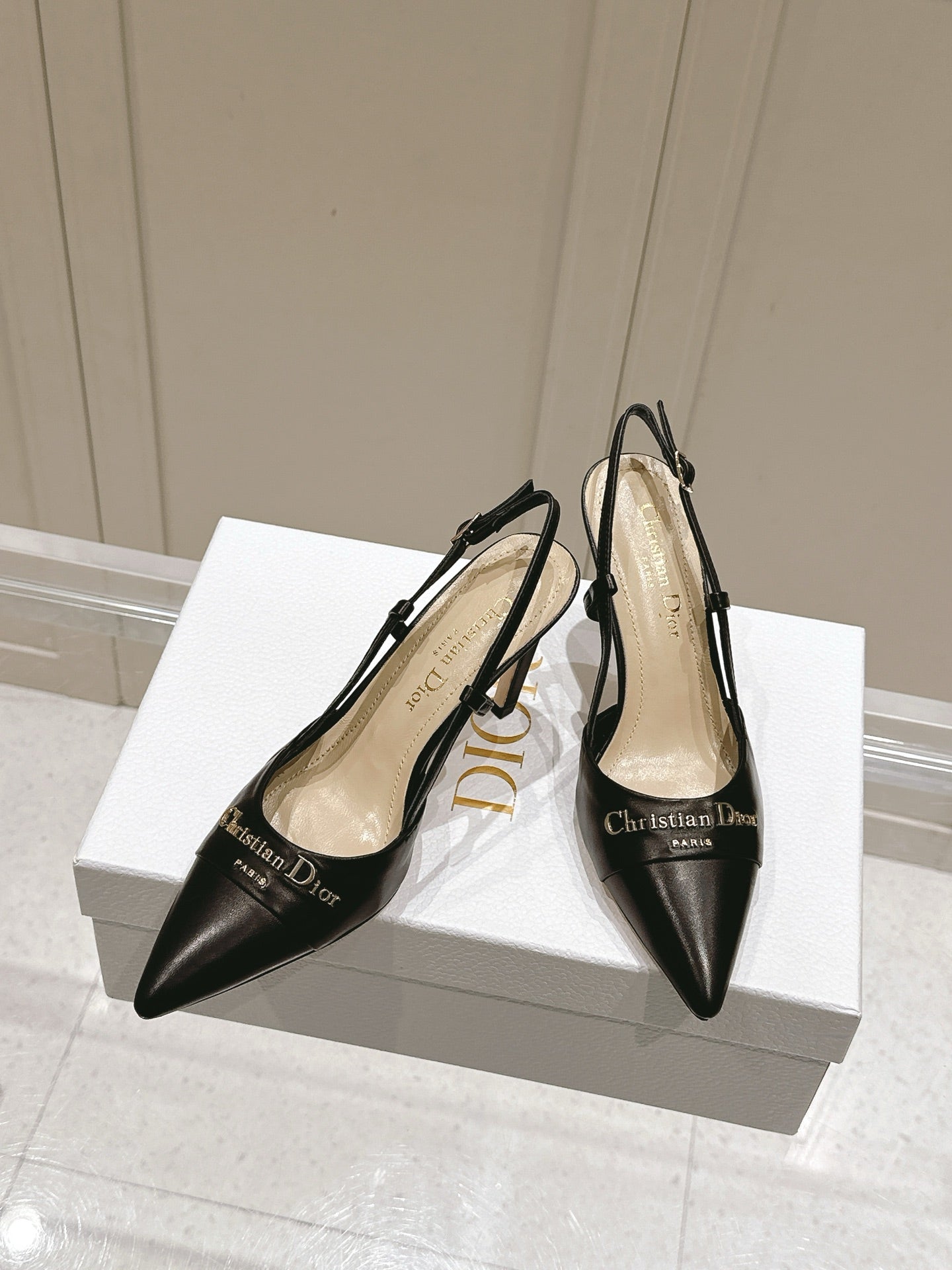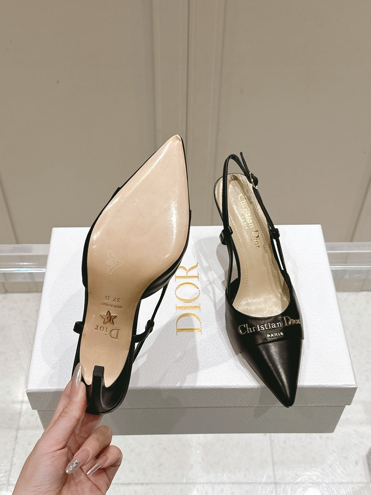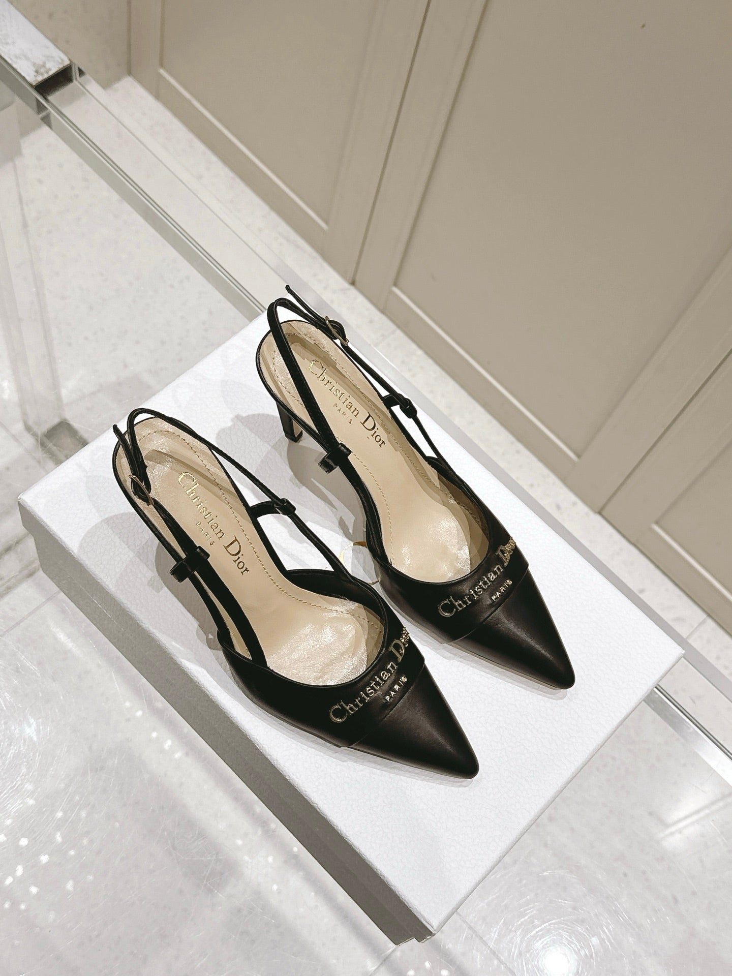 MY DD 25S SLINGBACK PUMP 50MM IN BLACK CALFSKIN