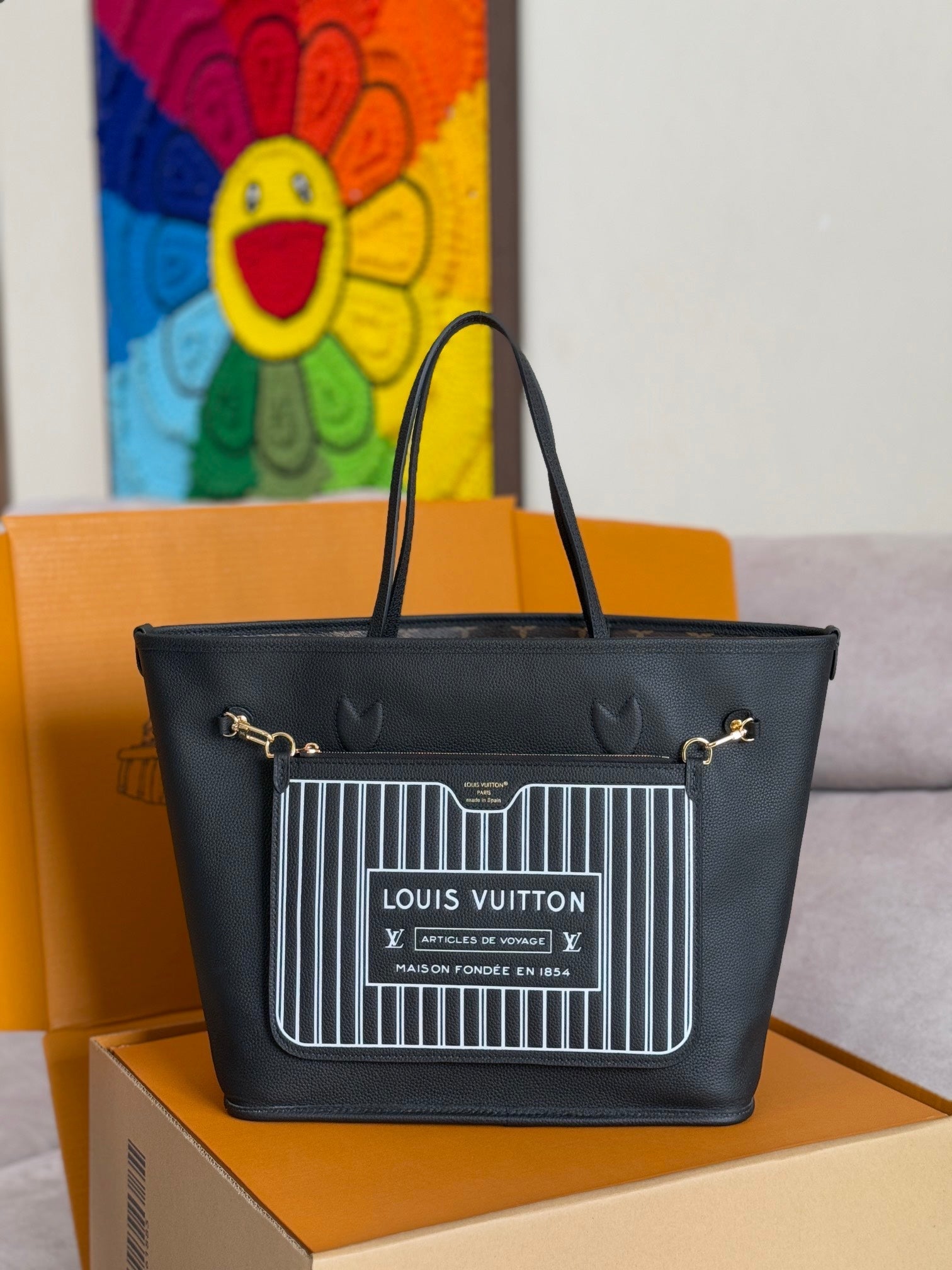 NEVERFULL INSIDE OUT MM BAG 31 IN BROWN MONOGRAM COATED CANVAS AND CALFSKIN