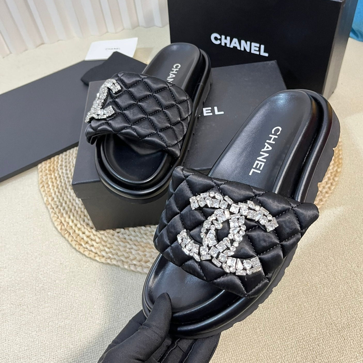 New Style Diamond Buckle Double C Thick Bottom Slippers Black Sheepskin