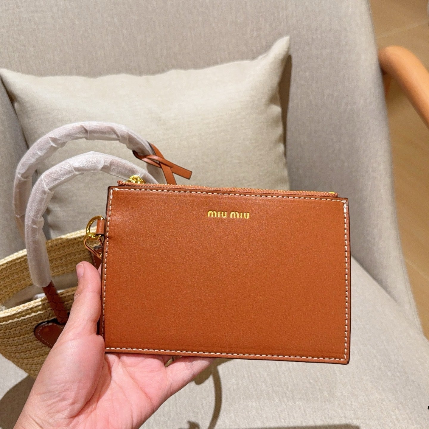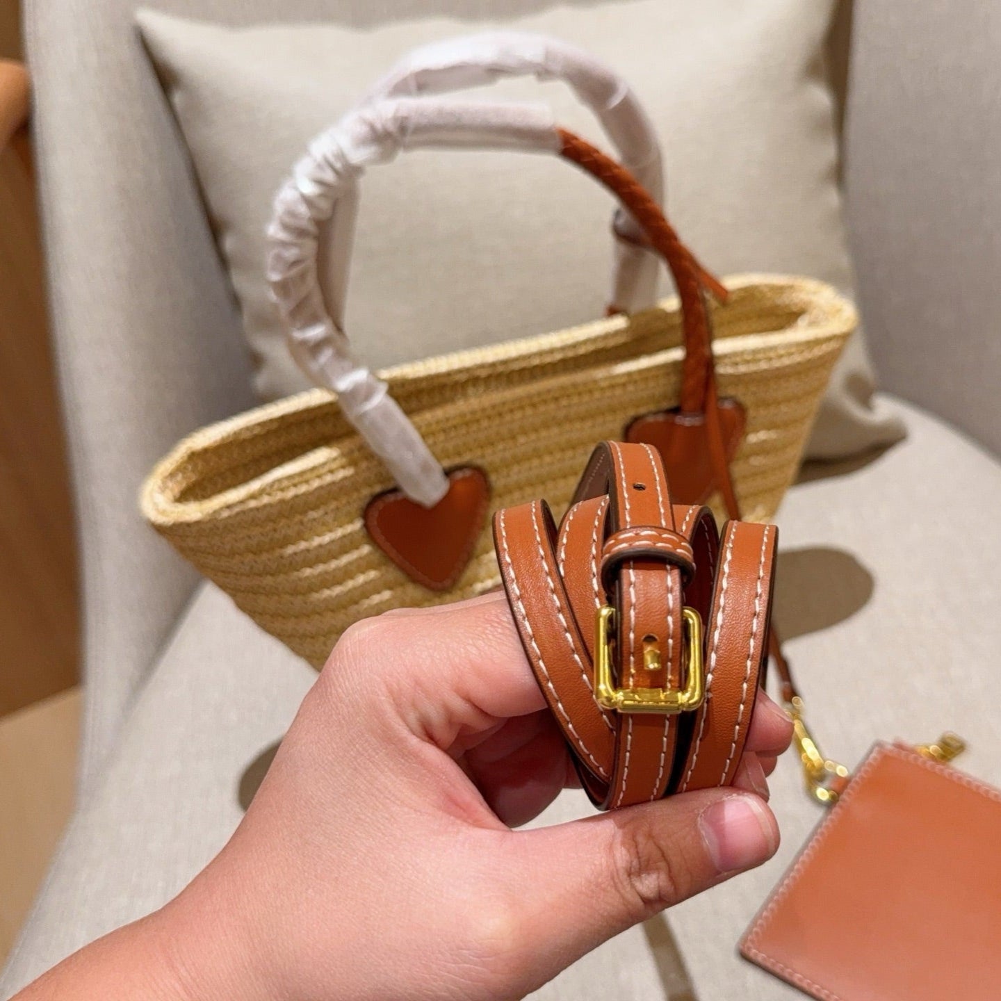 • Material: Woven raffia and Calfskin