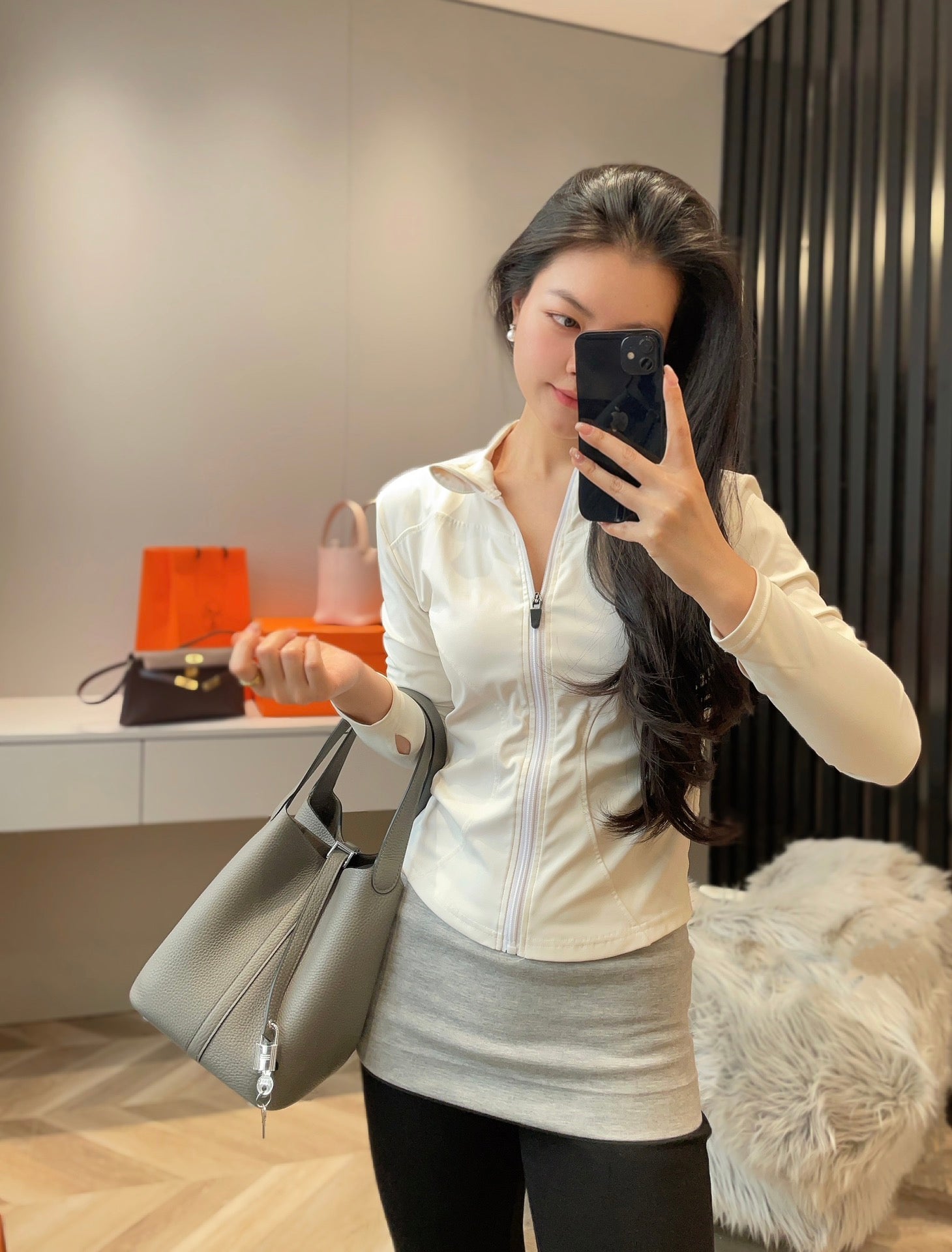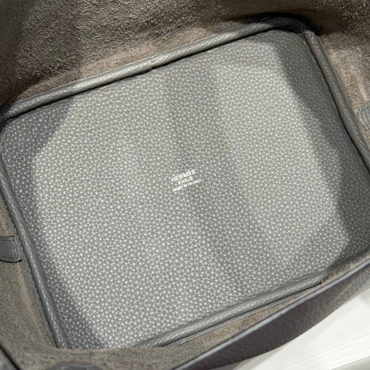 PICOTIN LOCK 22 IN GREY ETAIN CALFSKIN SILVER HARDWARE