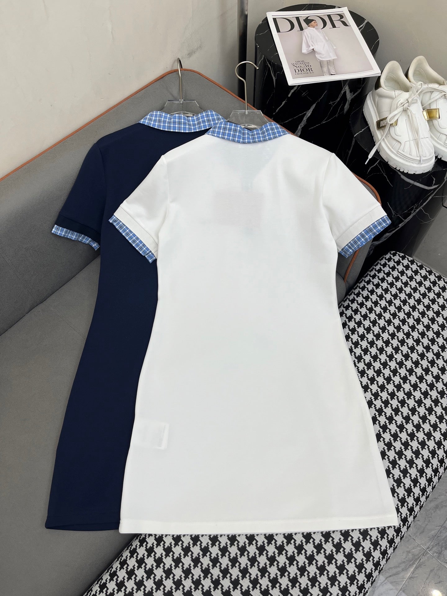 • Color: White and Navy blue