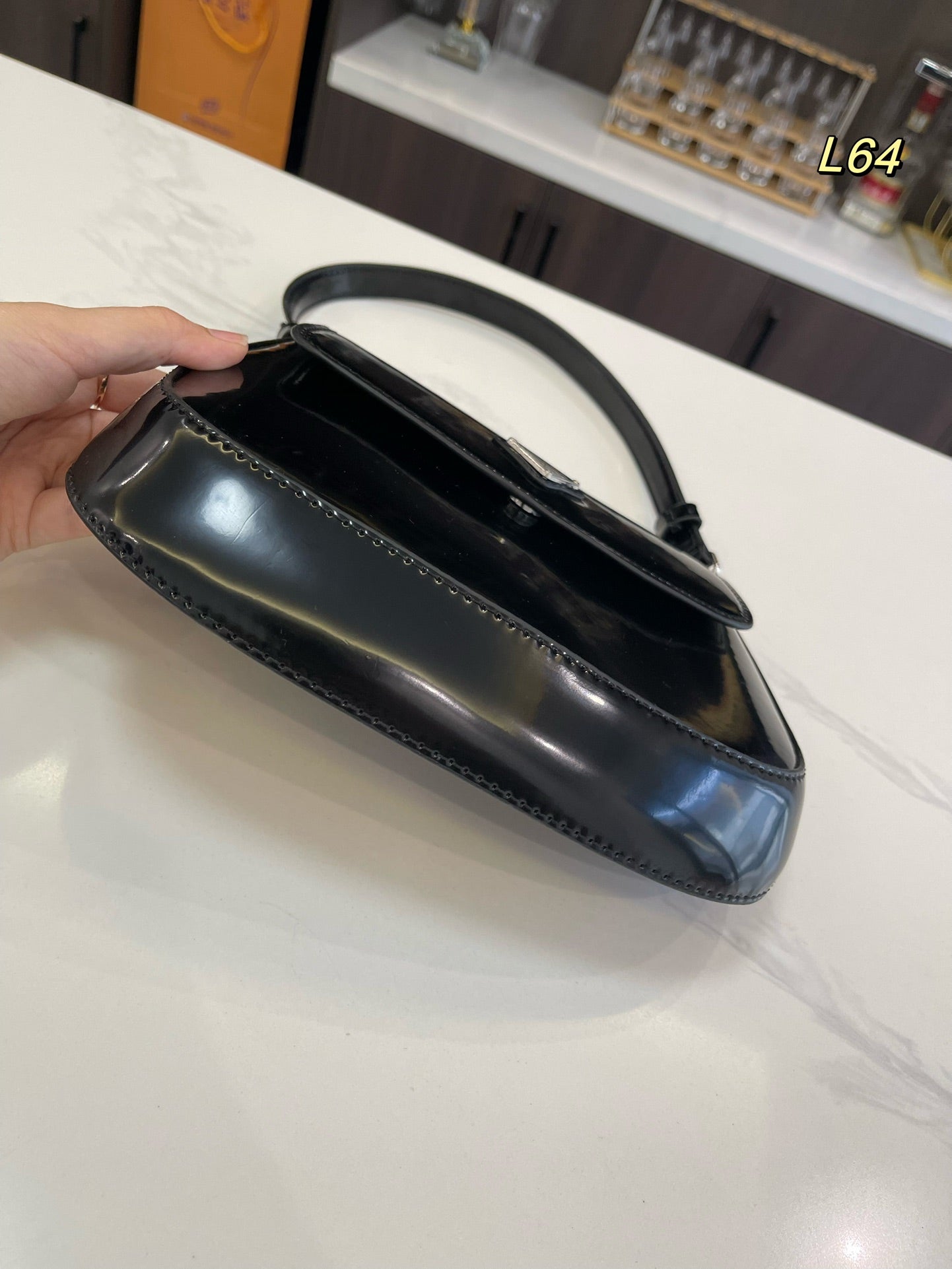 PRA 25 CLEO FLAP SHOULDER BAG IN BLACK BRUSHED LEATHER
