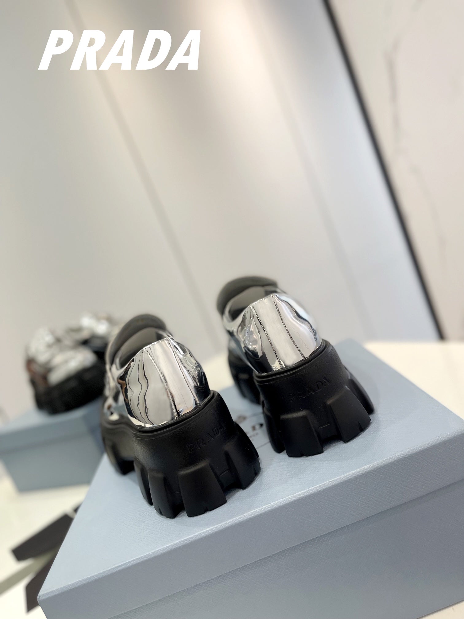 PRA BRUSHED LEATHER MONOLITH LOAFERS SILVER