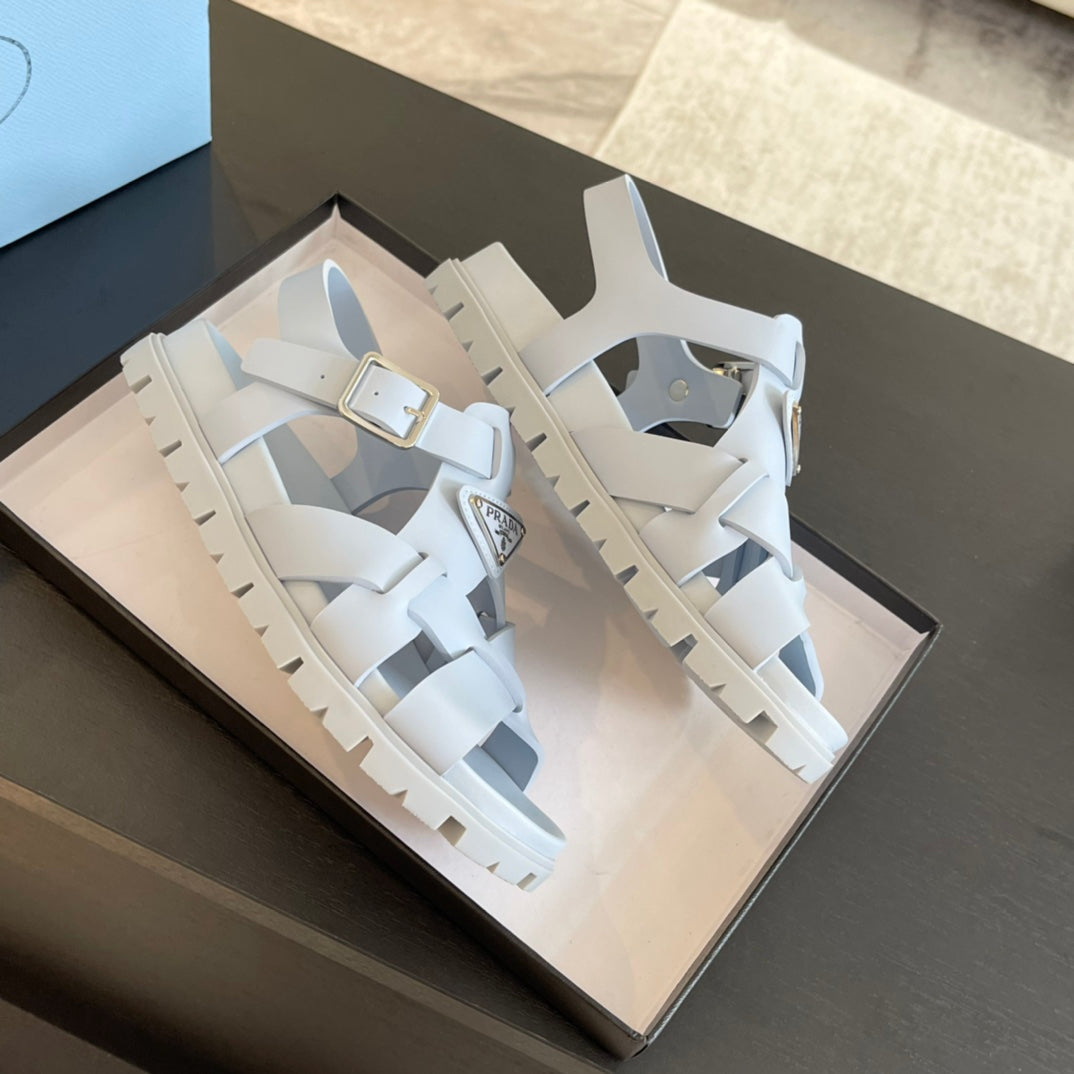 PRA CRISSCROSS RUBBER SANDALS PASTEL SKY CALFSKIN