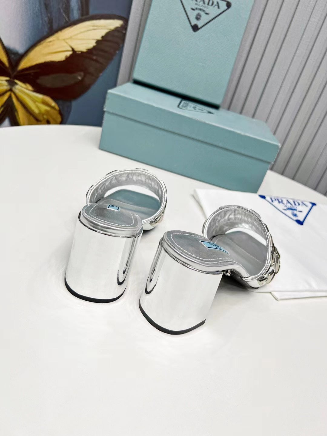 PRA EMBROIDERED SANDALS 65 SILVER CALFSKIN