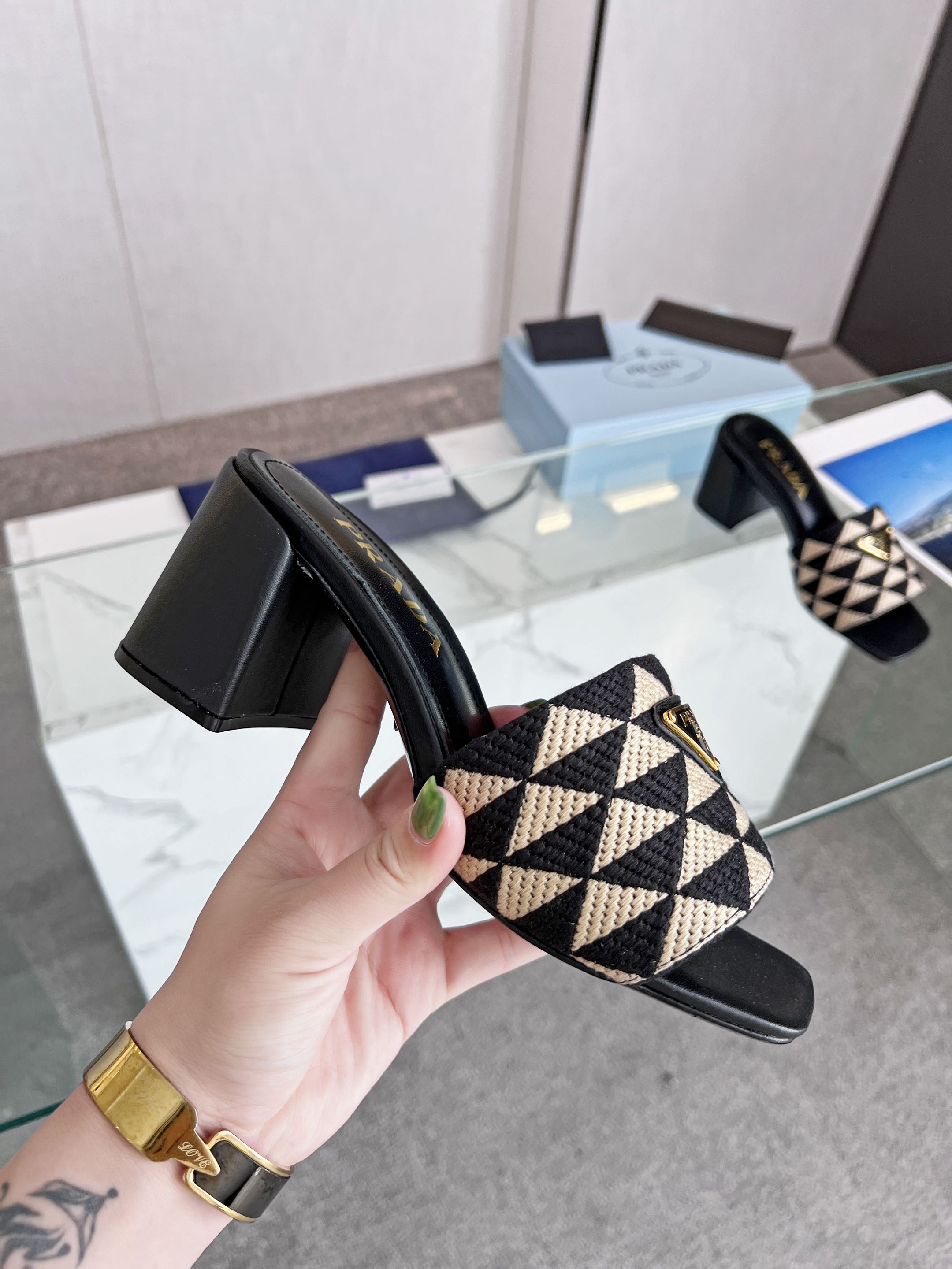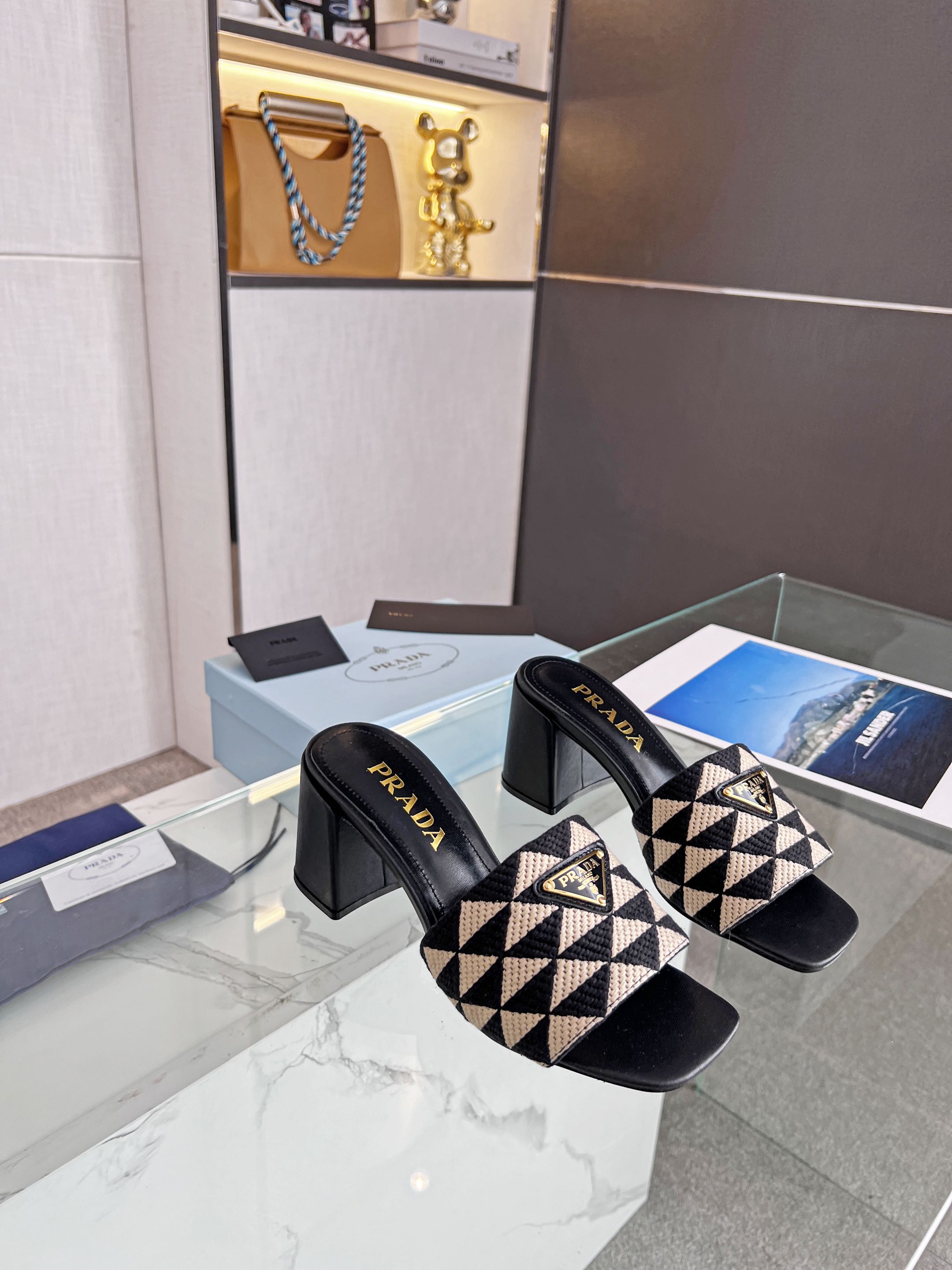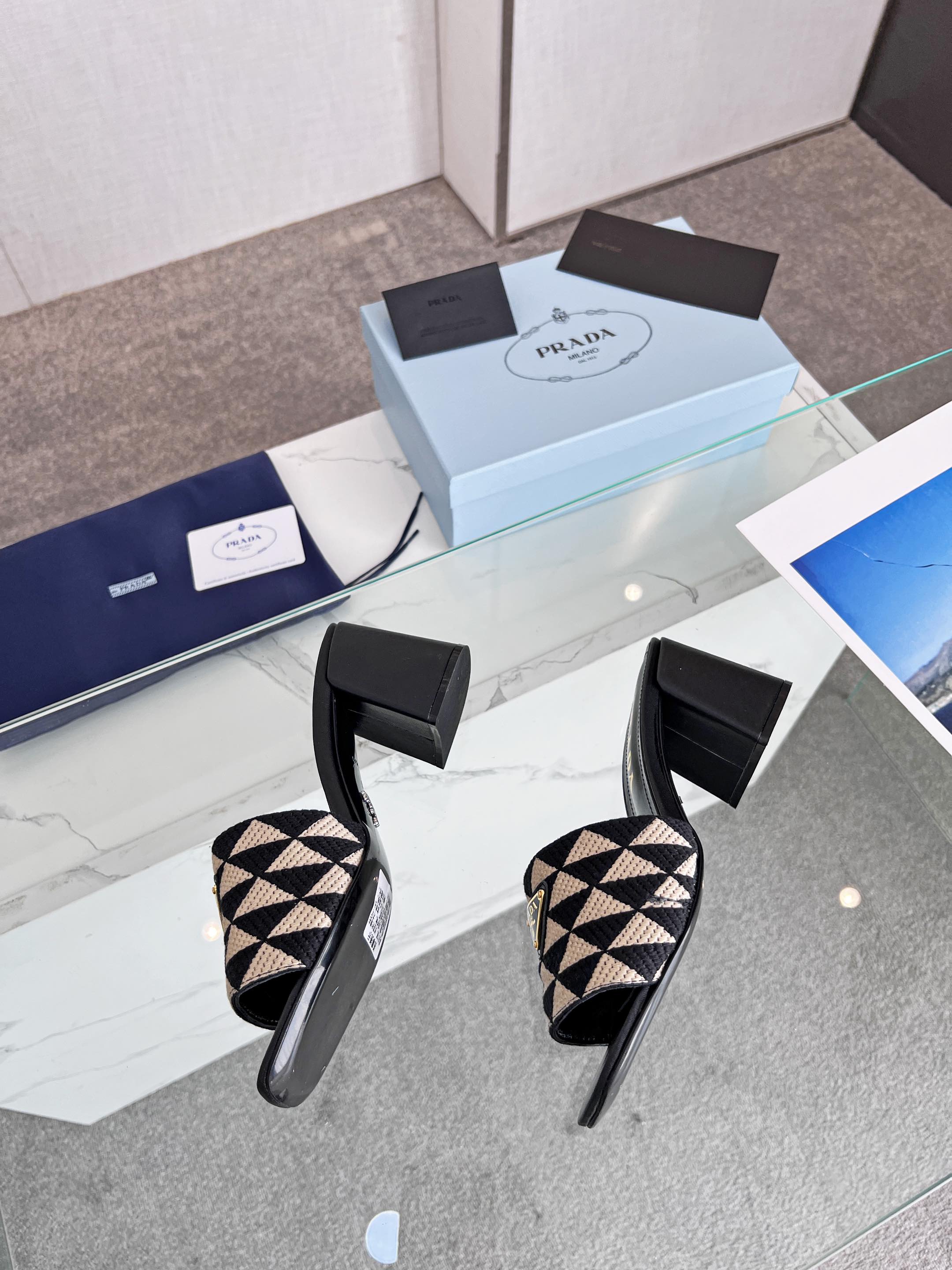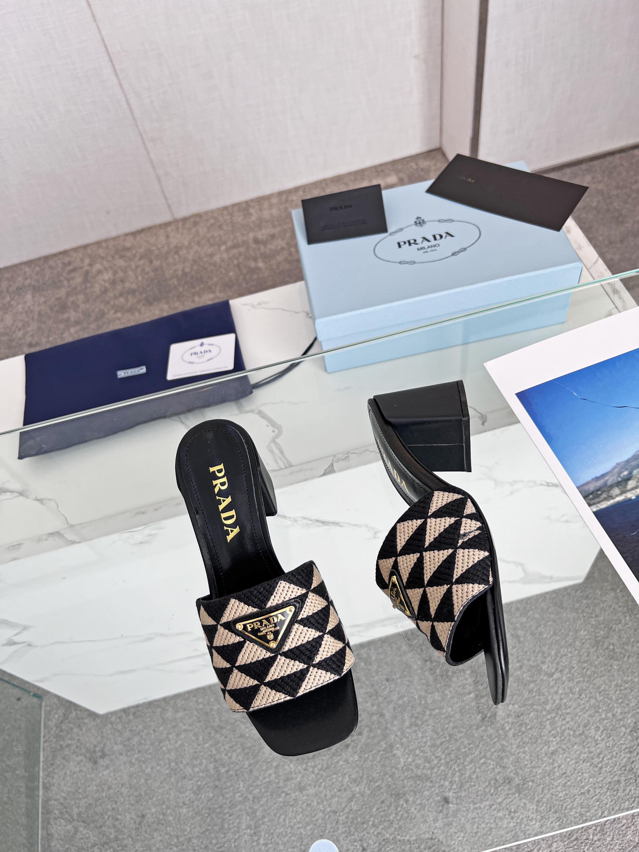 PRA EMBROIDERED SLIDES 65 BLACK AND BEIGE FABRIC