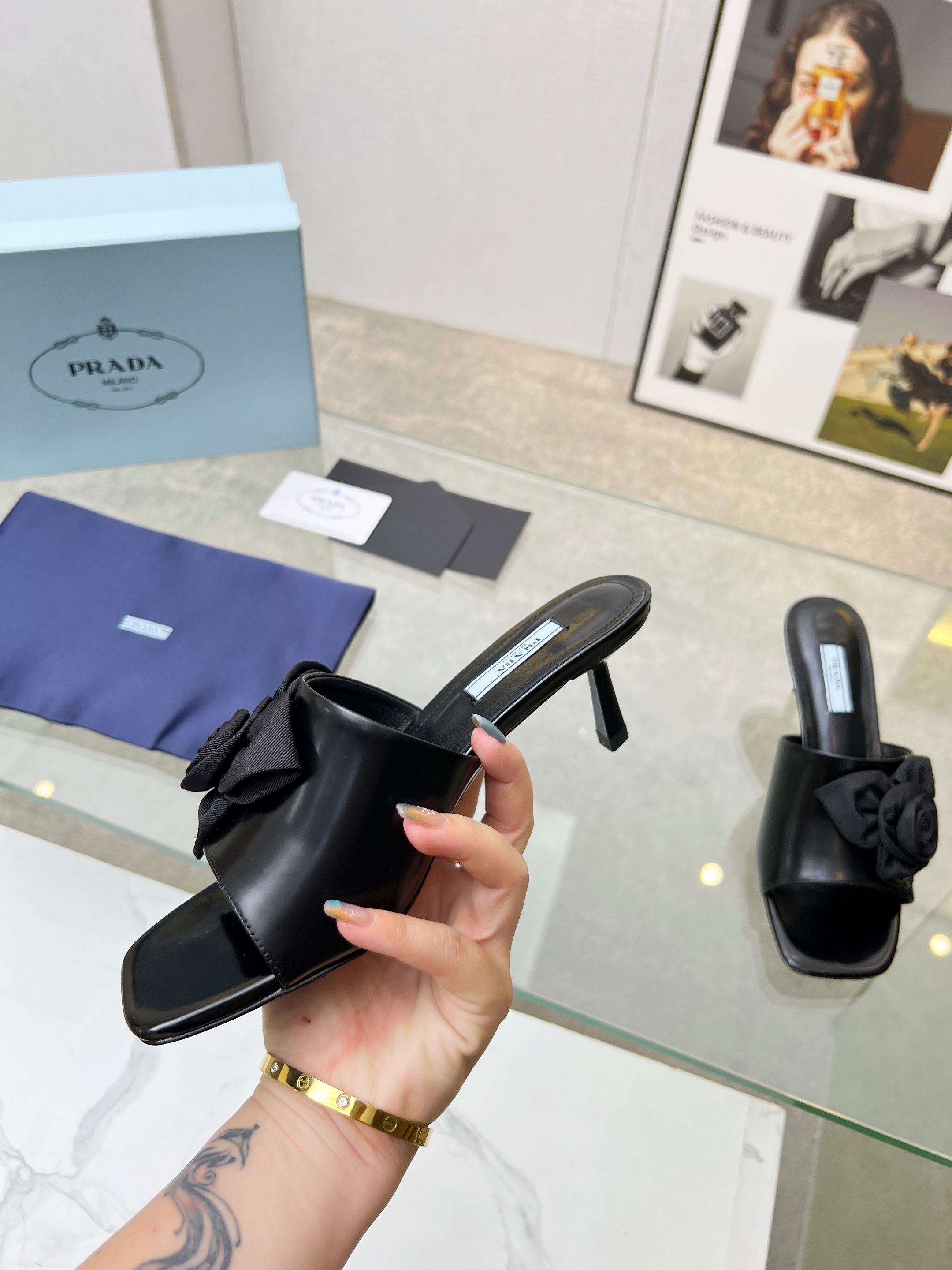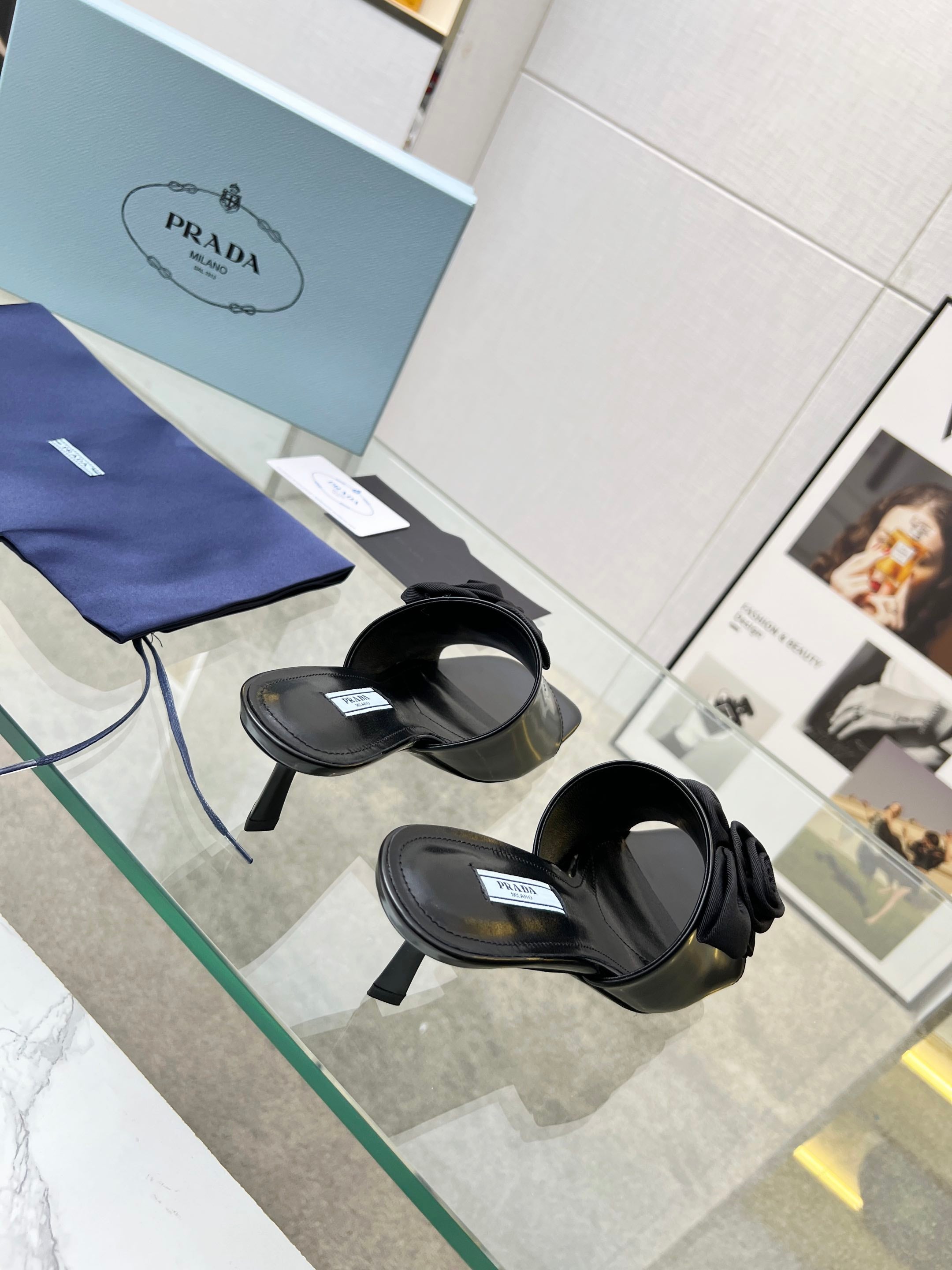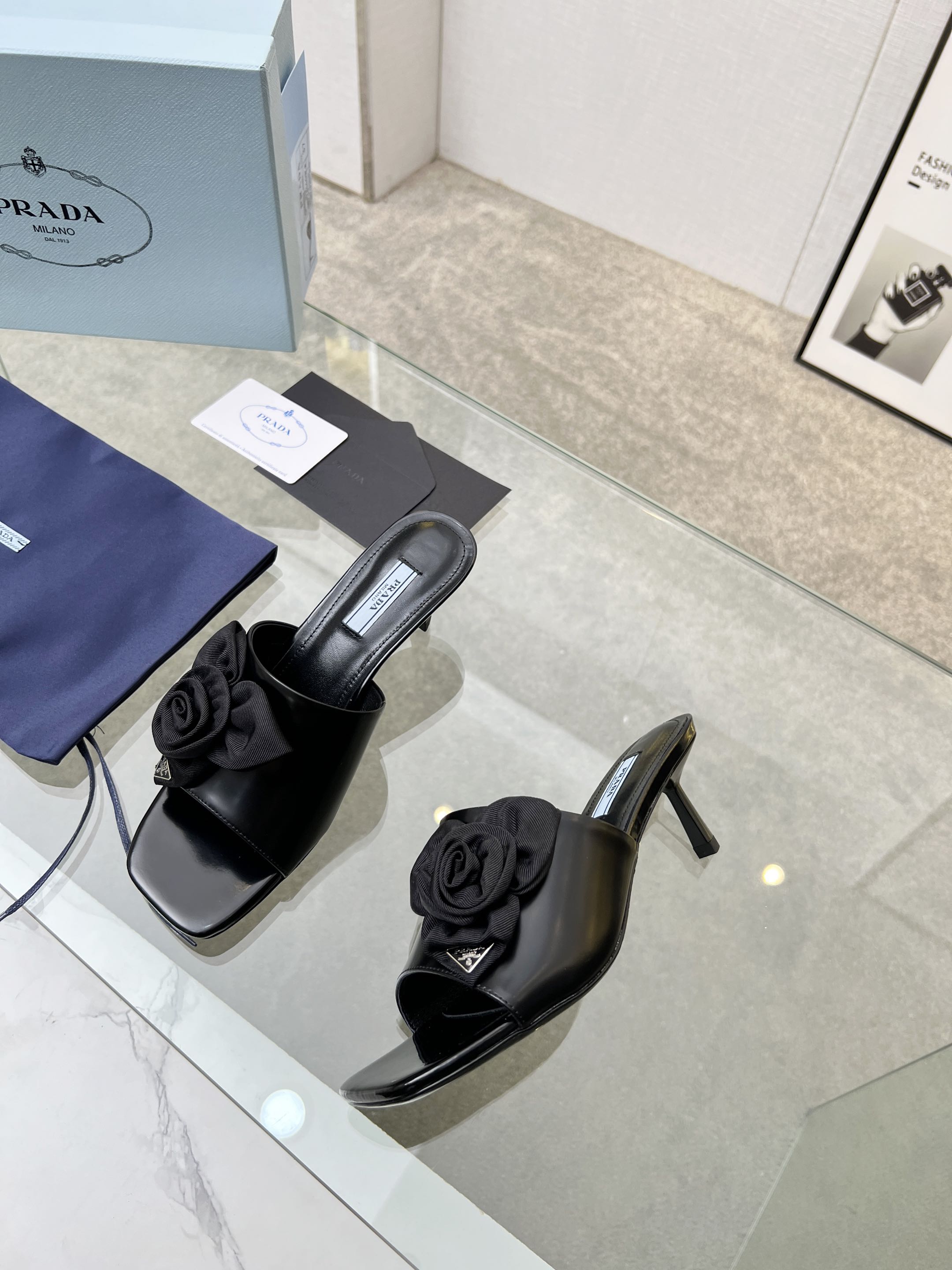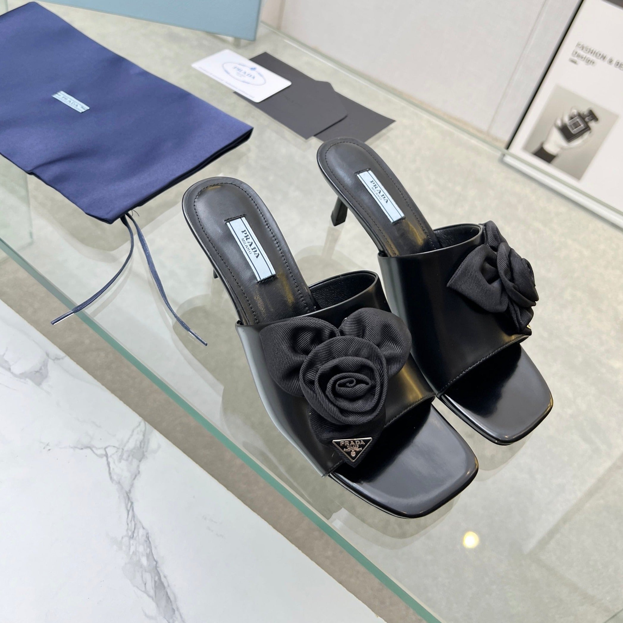 PRA FLOWER POINTED HEELS 55 BLACK CALFSKIN