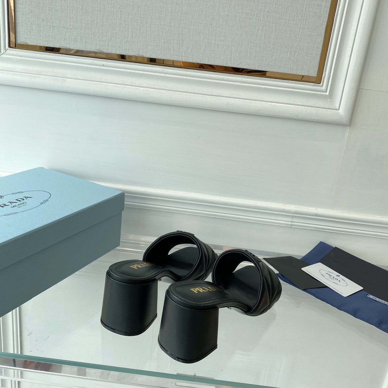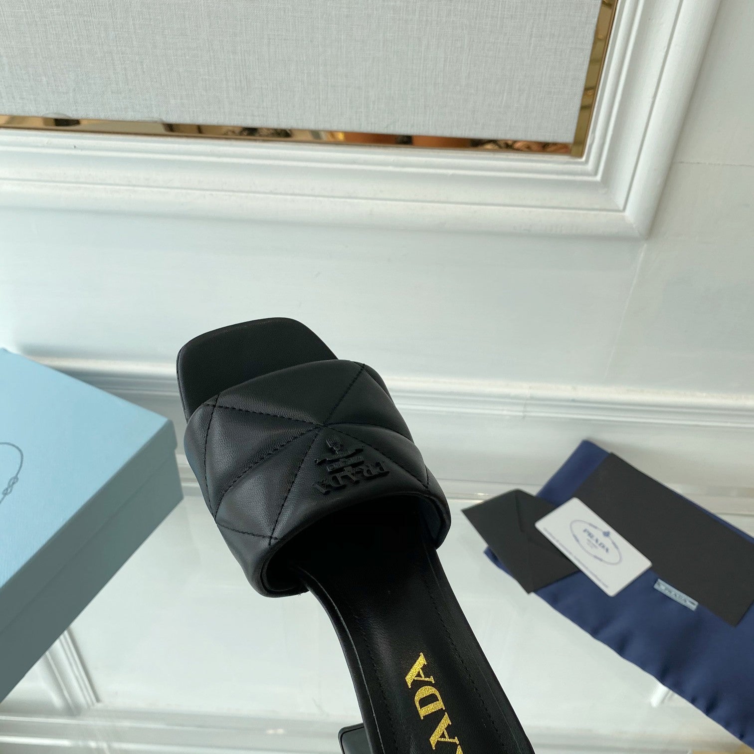 Pra Heeled Sandal 65 Square Sole Quilted Black Leather