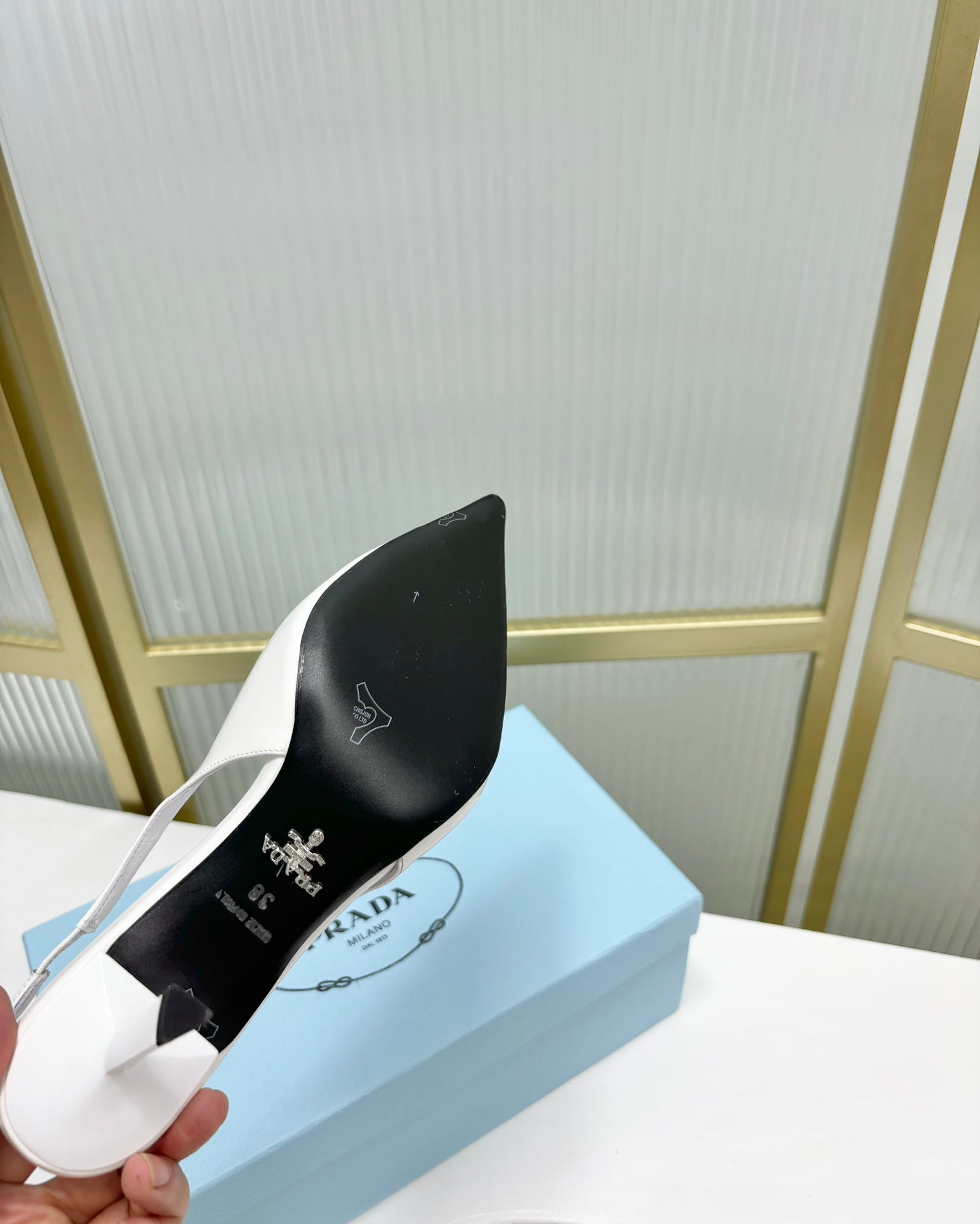 PRA PATENT LEATHER SLINGBACK PUMPS 75 WHITE