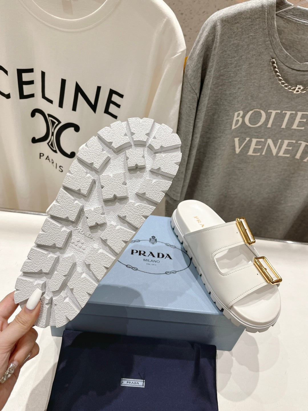 PRA STRAP SLIDES SANDALS WHITE CALFSKIN