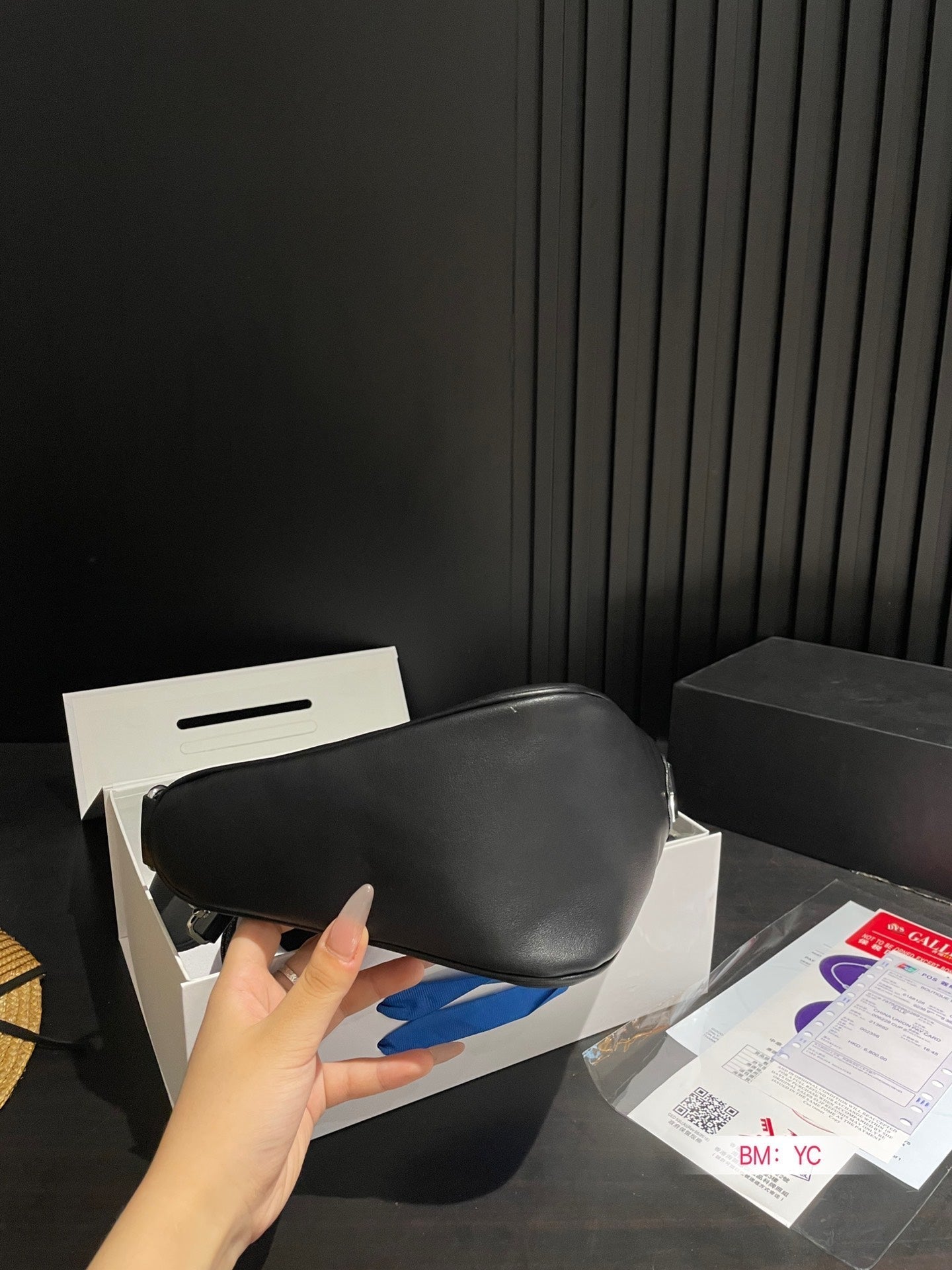 PRA TRIANGLE 26 SHOULDER BAG IN BLACK CALFSKIN