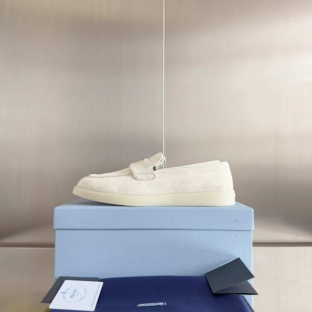Pra White Suede Leather Loafers 25mm Rubber Sole