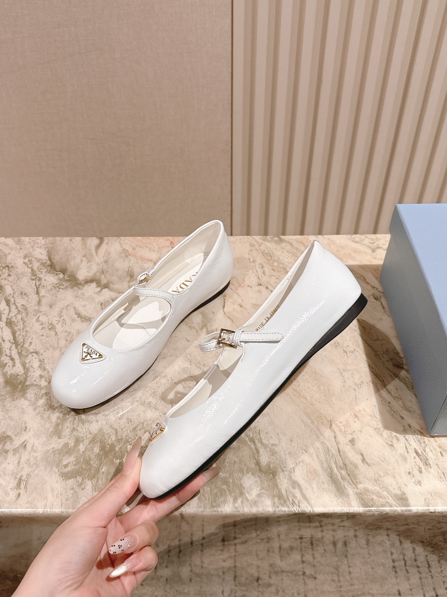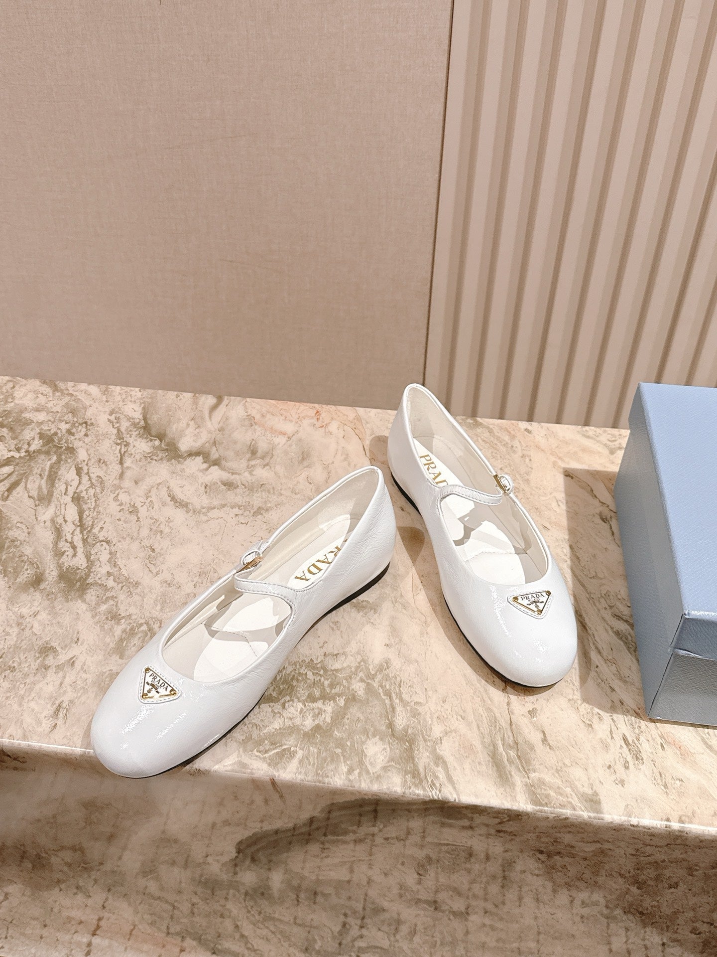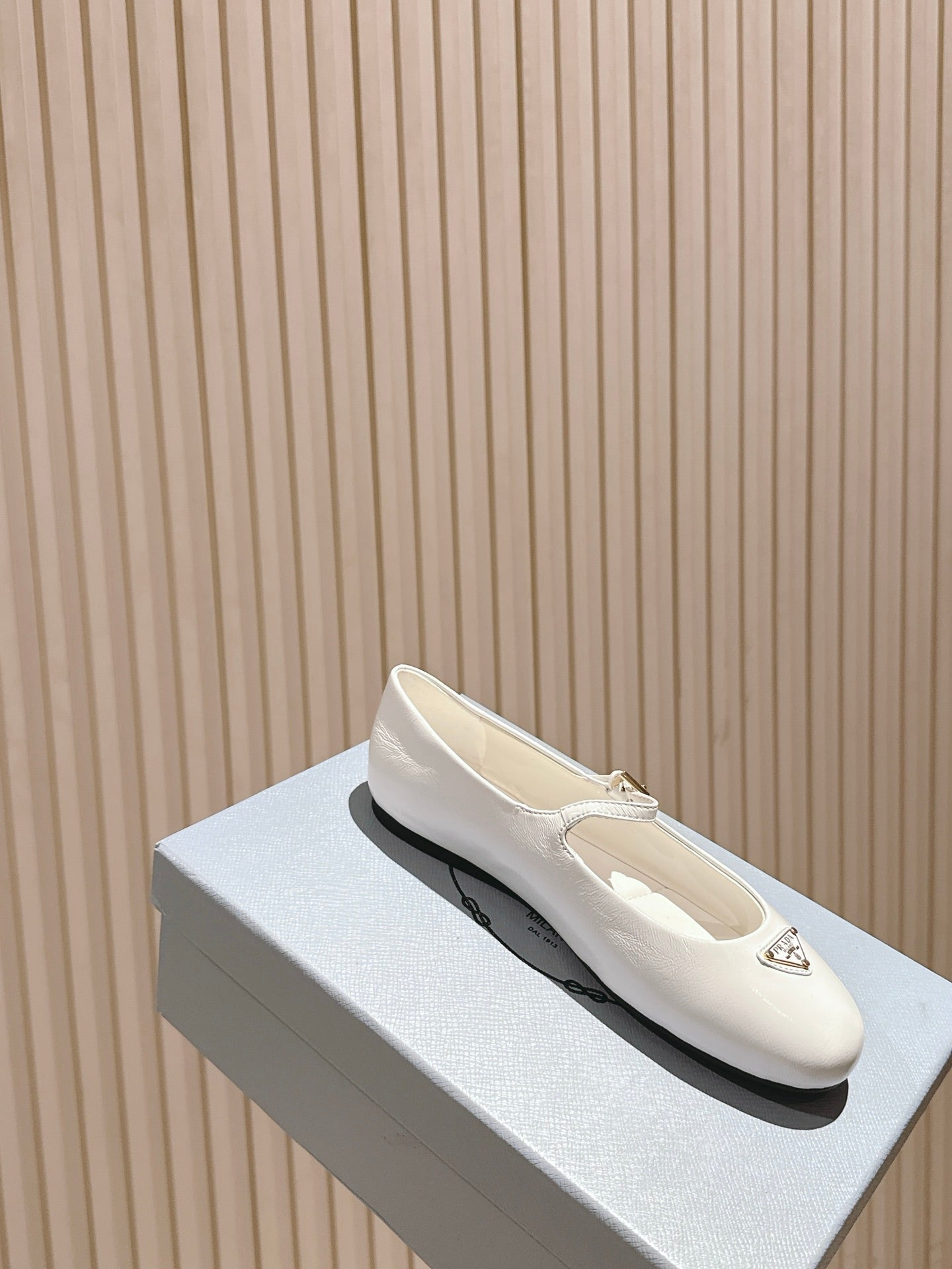 PRADA 25S BALLERINAS IN WHITE CALFSKIN GLOSSY