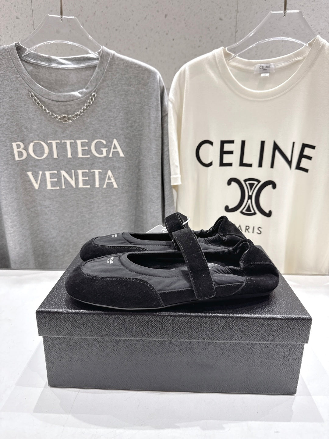 PRADA 25S COLLAPSE RE NYLON AND SUEDE BALLERINAS IN BLACK