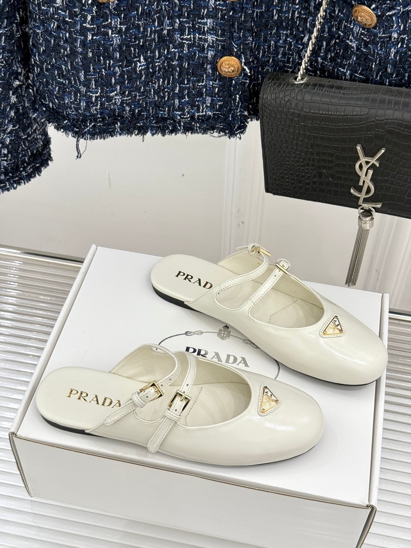 PRADA 25S DUAL MARY JANE BALLERINA MULES IN IVORY CALFSKIN
