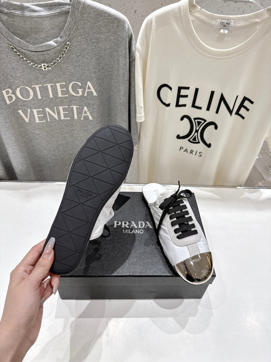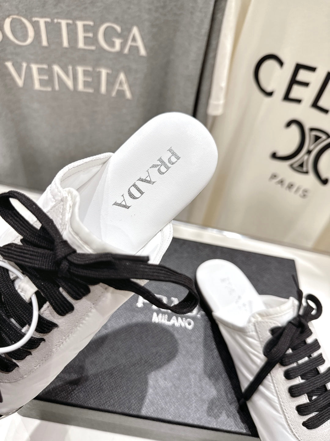 PRADA 25S MULES IN WHITE WITH METAL TOECAP
