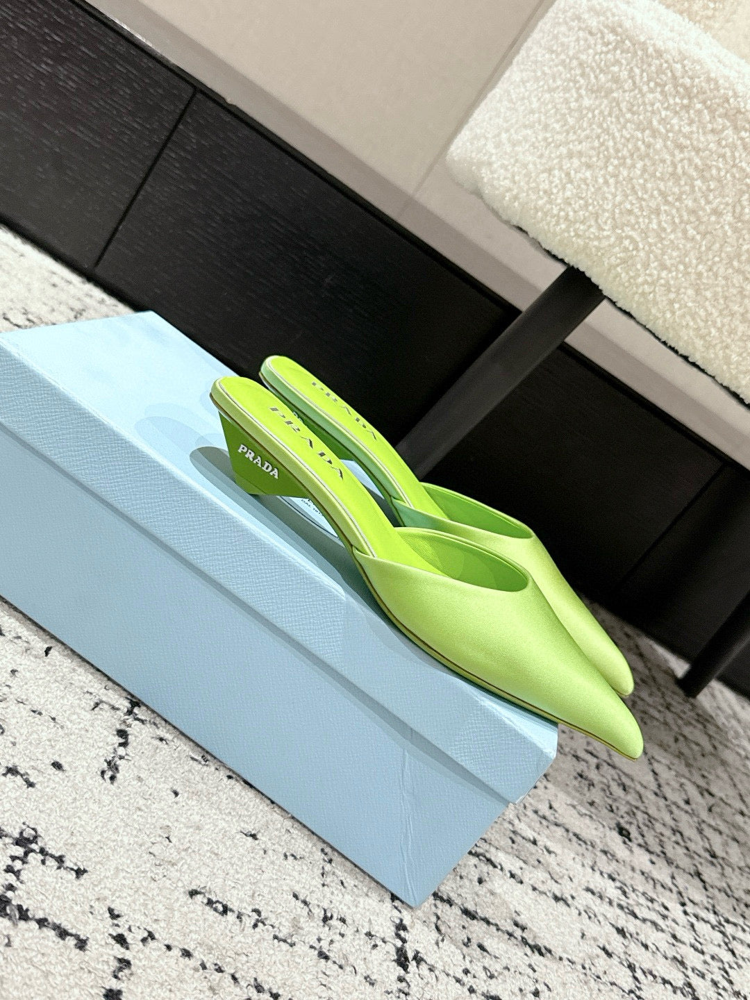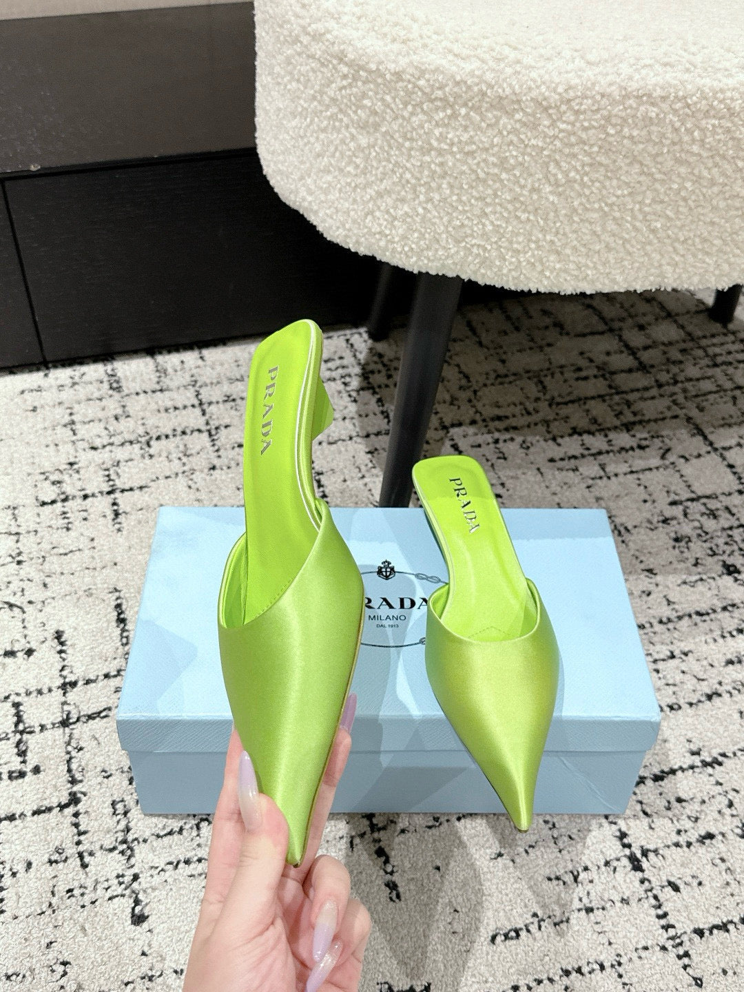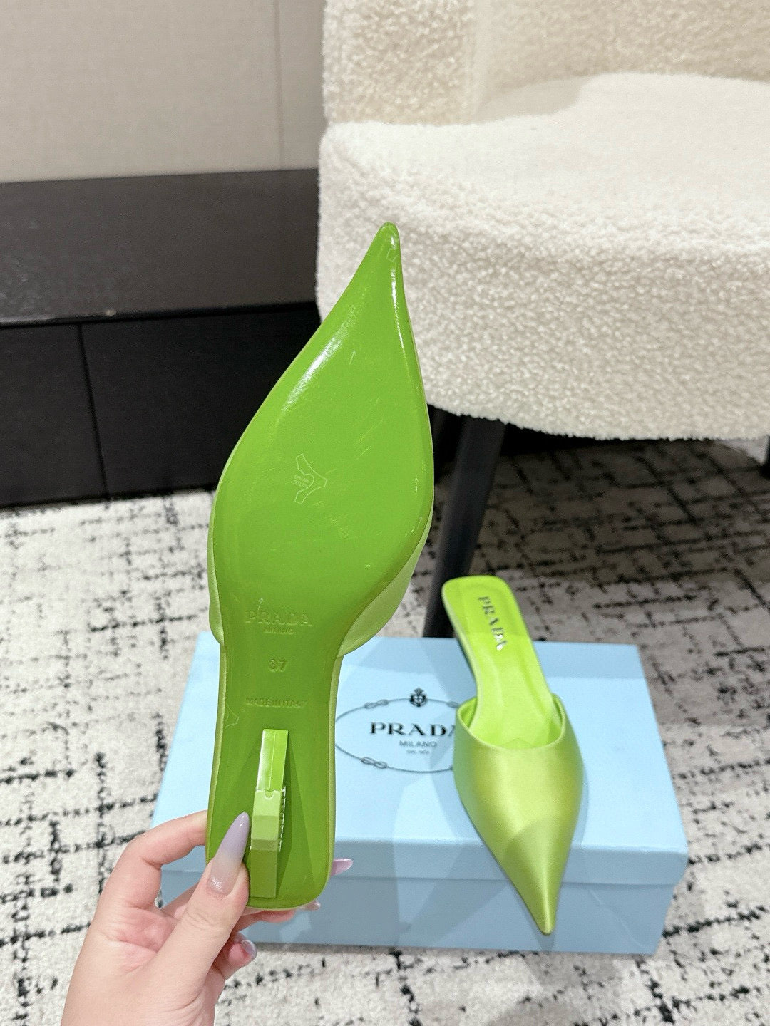 PRADA 25S POINTED-TOE MULES IN LIME GREEN SATIN