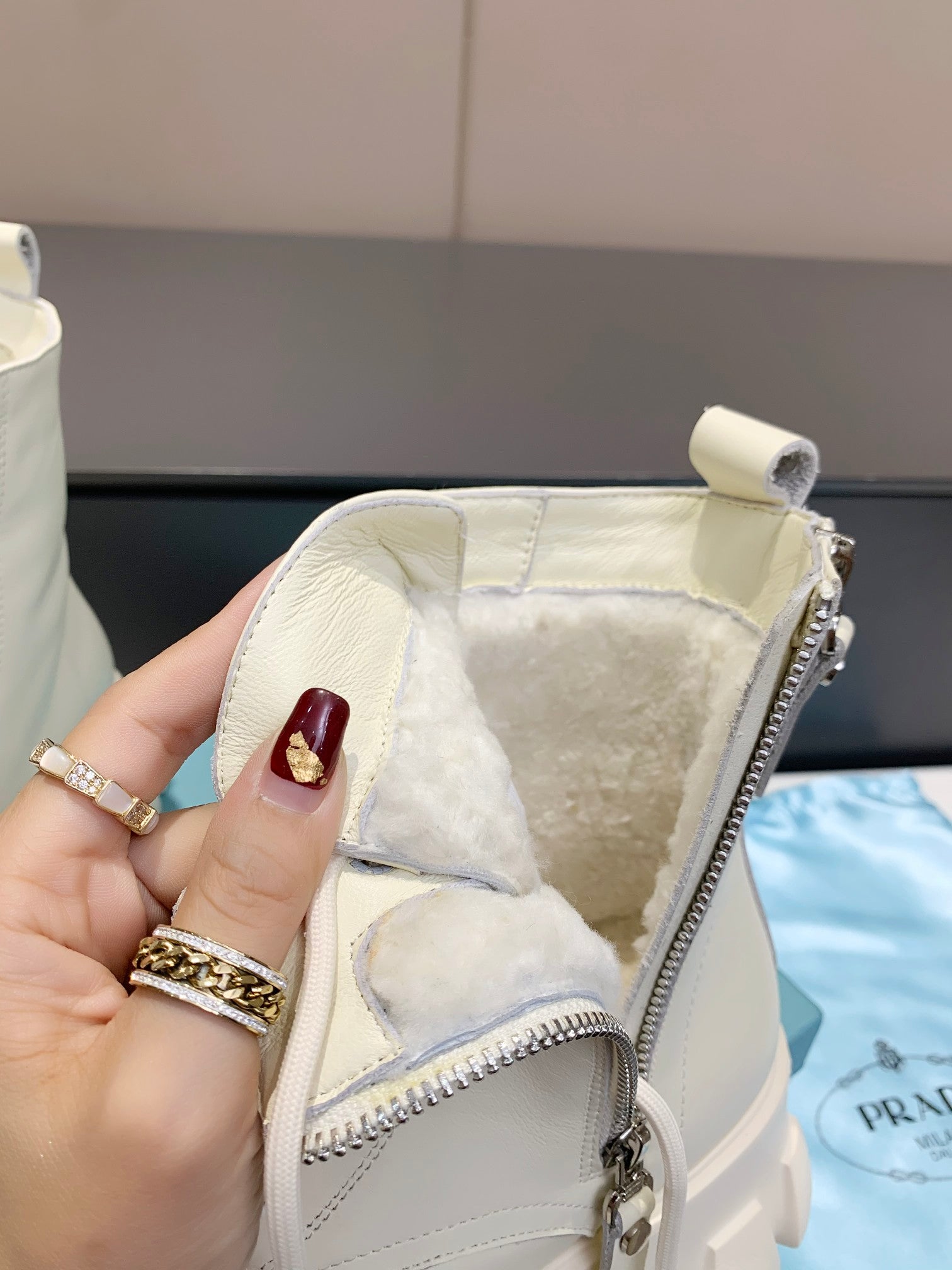 PRADA 25S SNOW BOOTS  IN WHITE CALFSKIN