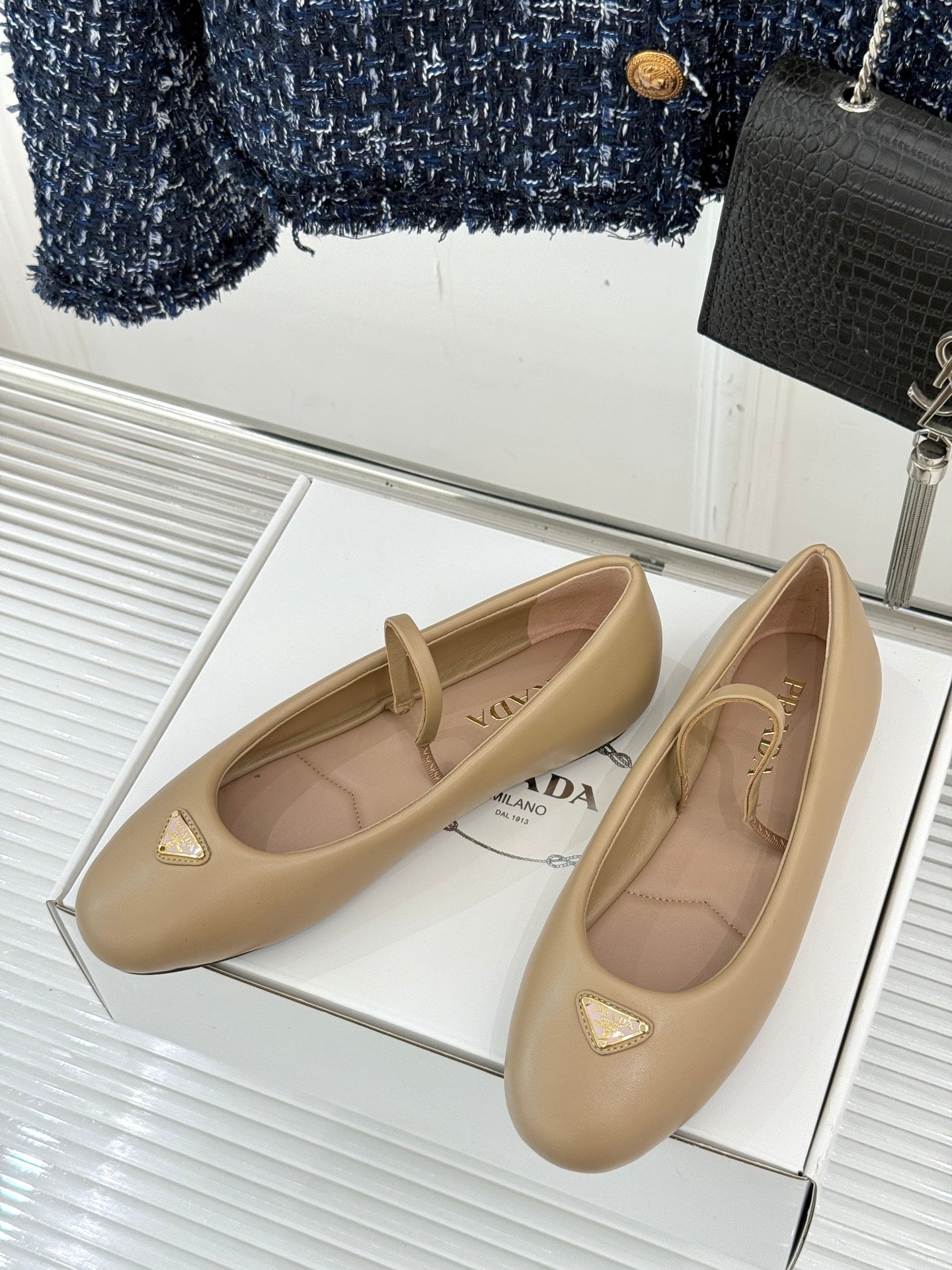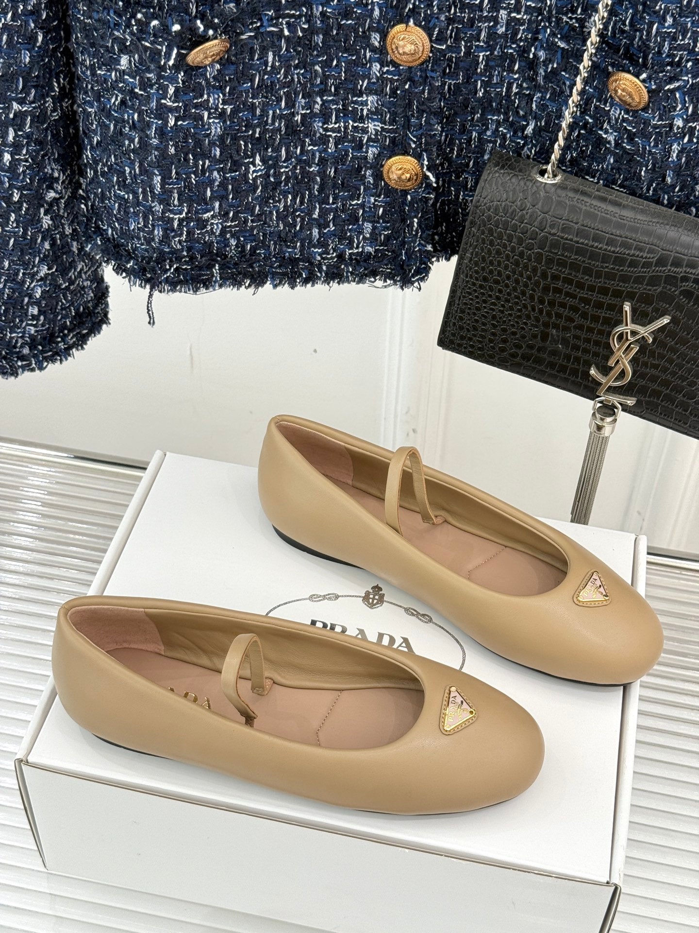 PRADA 25S SOFT PADDED BALLERINAS IN BEIGE NAPPA LEATHER