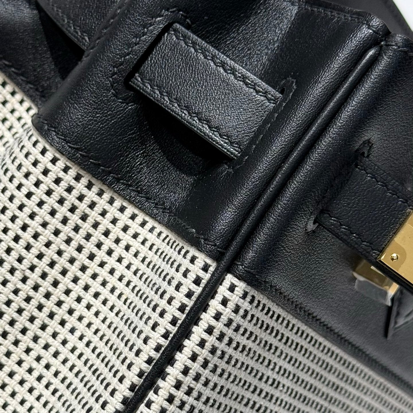 QUADRILLE BIRKIN 30CM IN BLACK SWIFT CALFSKIN WHITE BLACK PLAID TOILE CANVAS