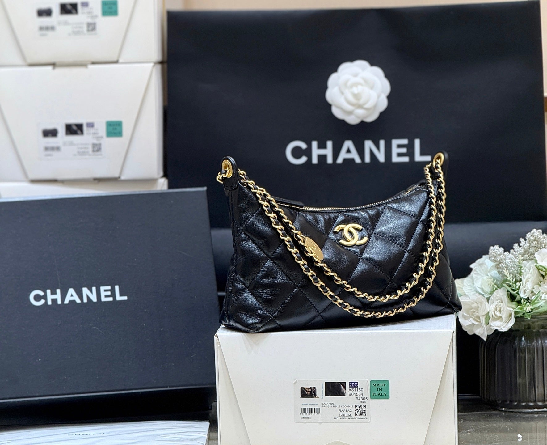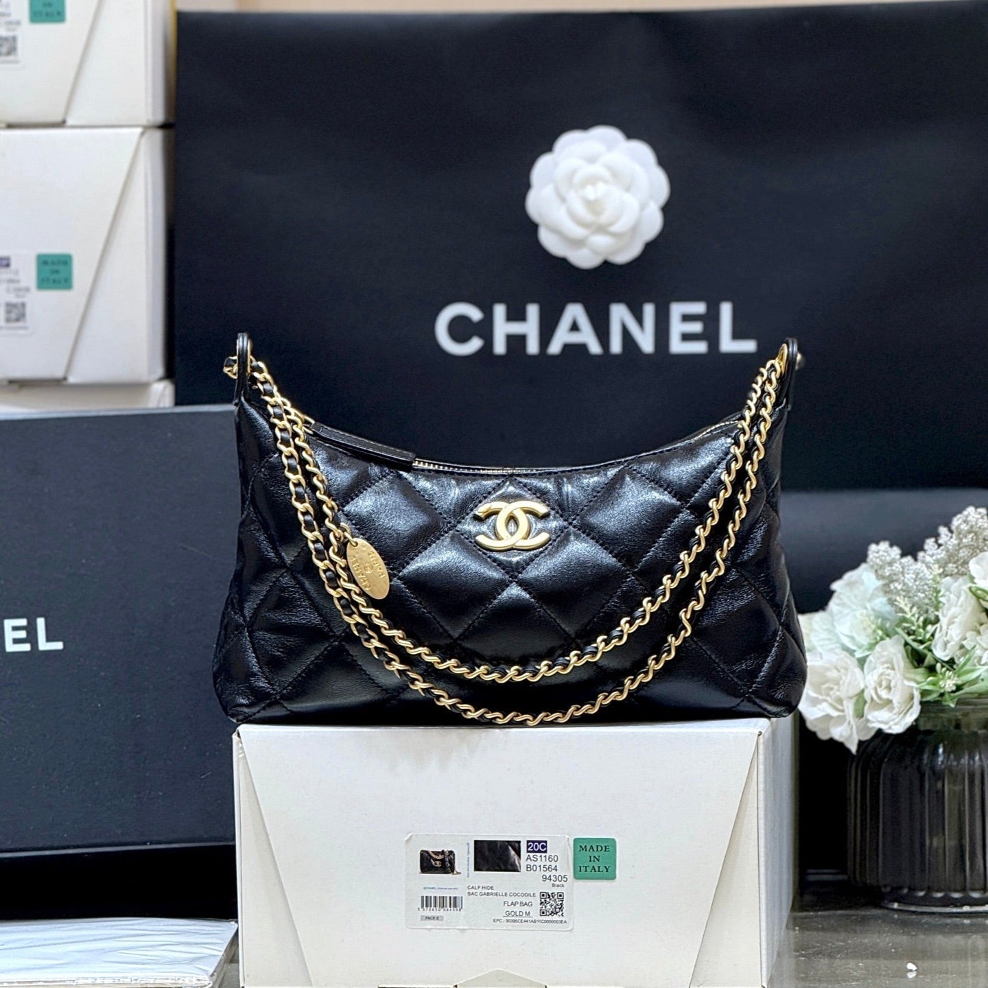 QUILTED HOBO SHOULDER BAG 26 IN BLACK GLOSSY LAMBSKIN