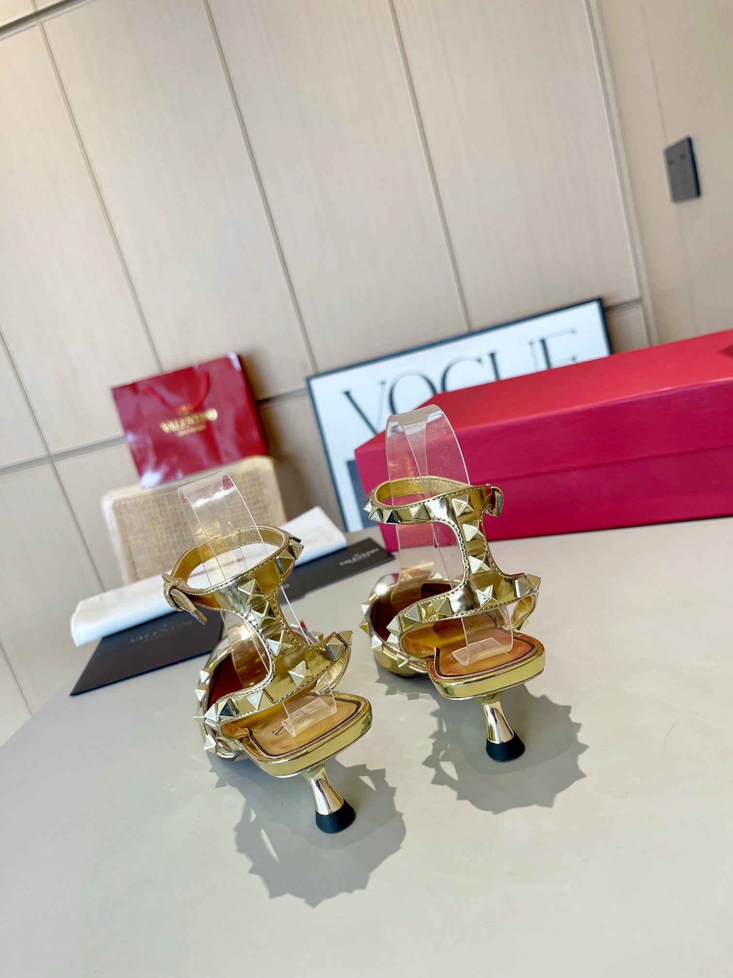 ROCKSTUD CAGED SLINGBACKS 5 CM IN GOLD CALFSKIN