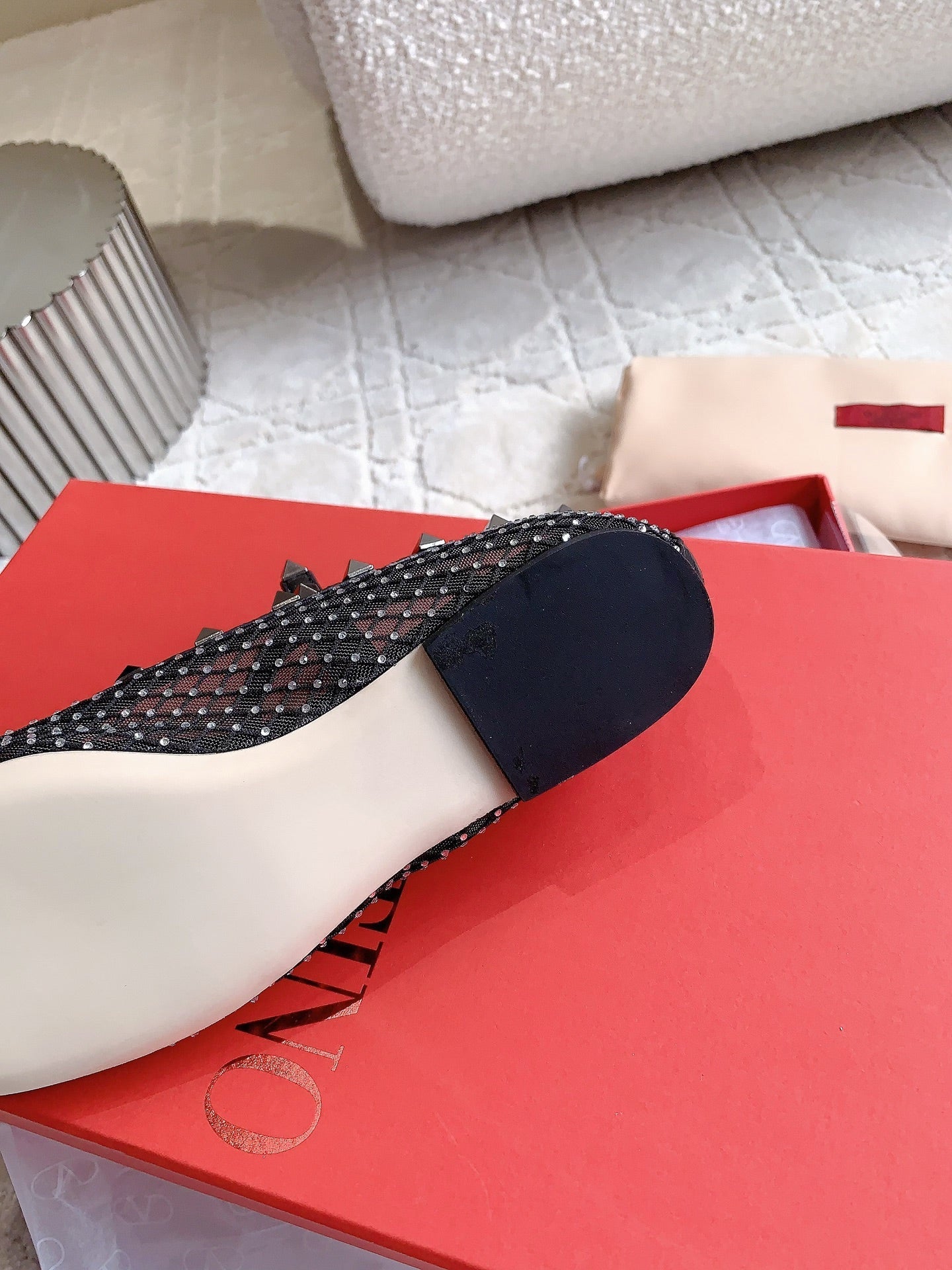 Rockstud Mesh Ballerina Black With Crystals