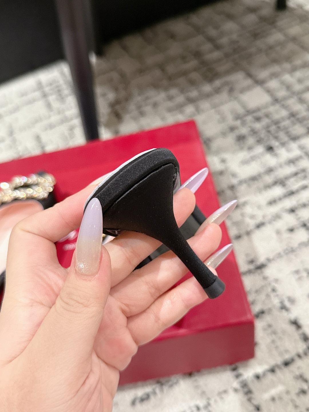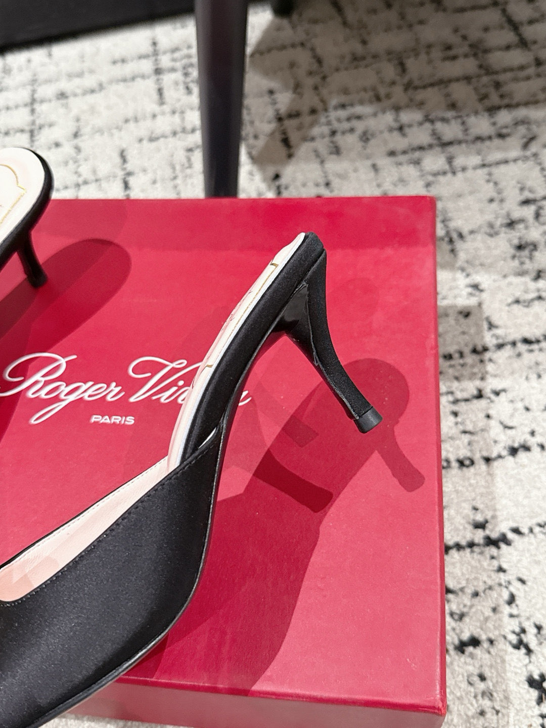 ROGER VIVIER 25S EFFLORESCENCE MULES 65MM IN BLACK SATIN EMBELLISHED CRYSTALS