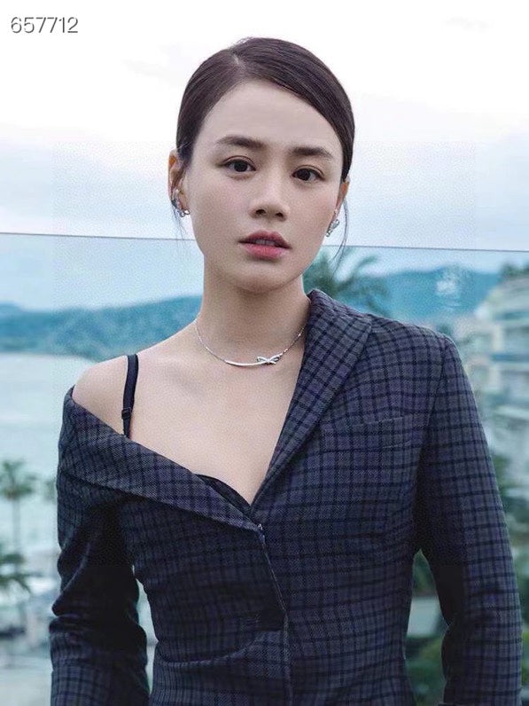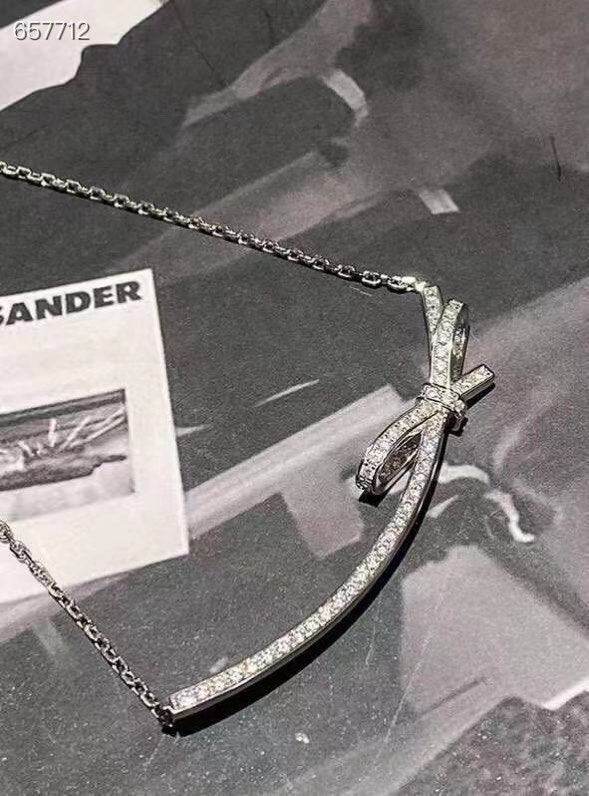 RUBAN BOW IN 18K WHITE GOLD PLATING DIAMOND NECKLACE