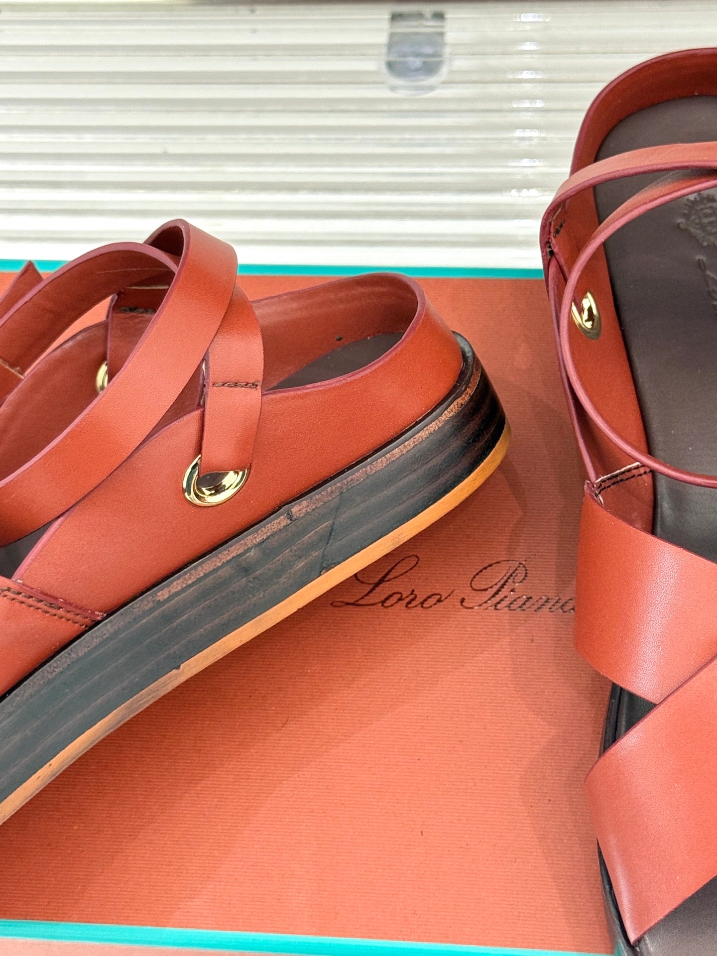 SANDALS THICK SOLE CROSS STRAP IN BURNT ORANGE AND BROWN CALFSKIN