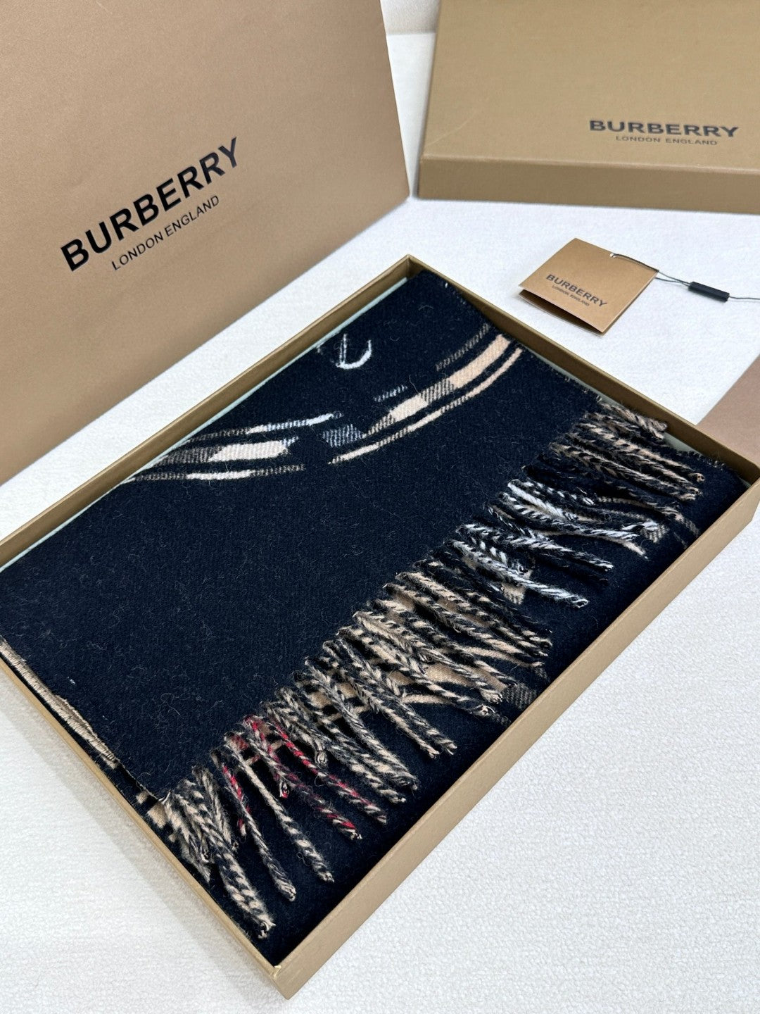 SCARF 180 CM IN BLACK AND TAN BROWN CASHMERE 407240
