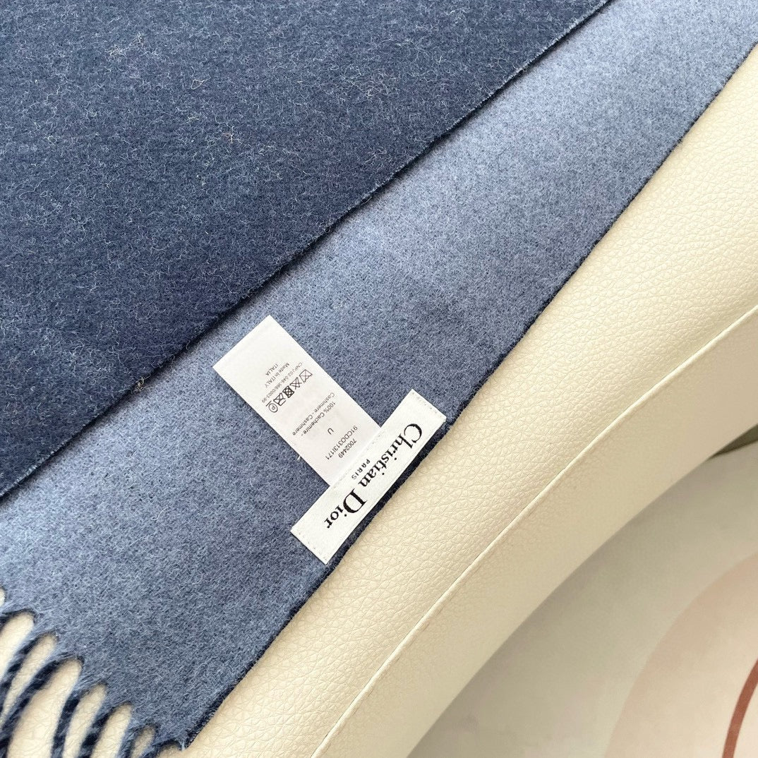 SCARF 180 CM NAVY BLUE WOOL AND CASHMERE 407336