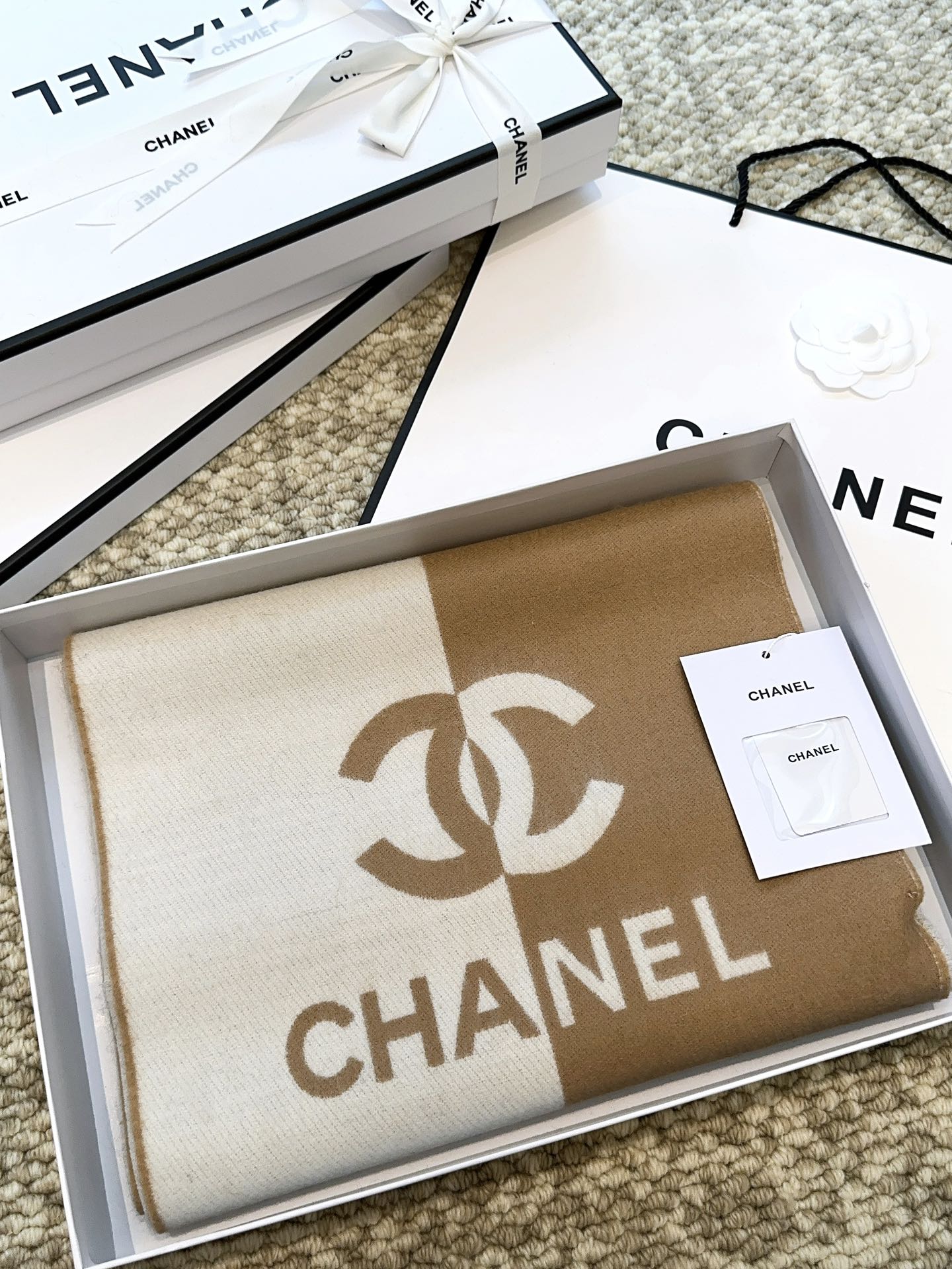 SCARF 184 CM IN PEANUT BROWN MIX WHITE MERINO WOOL 393121