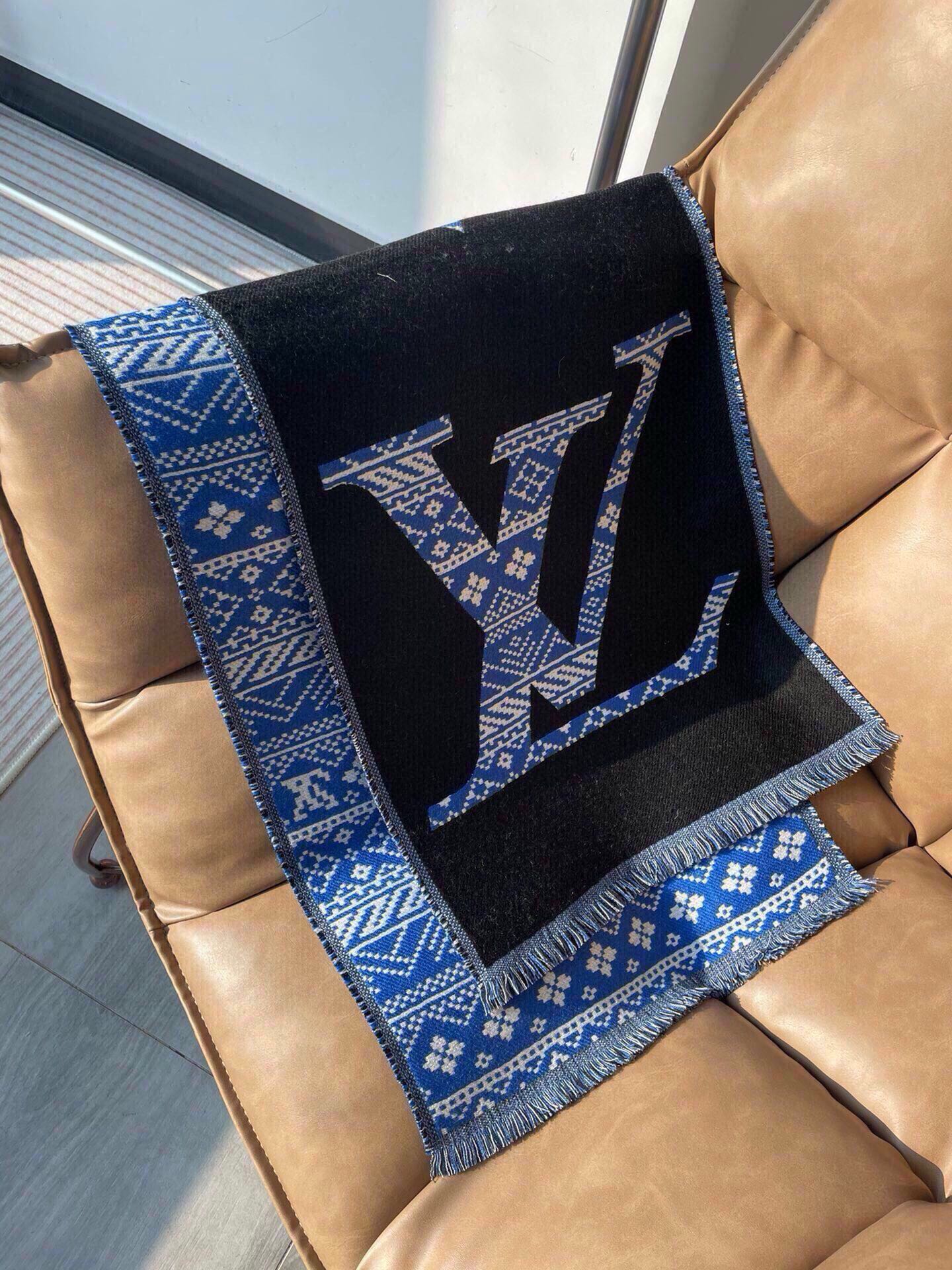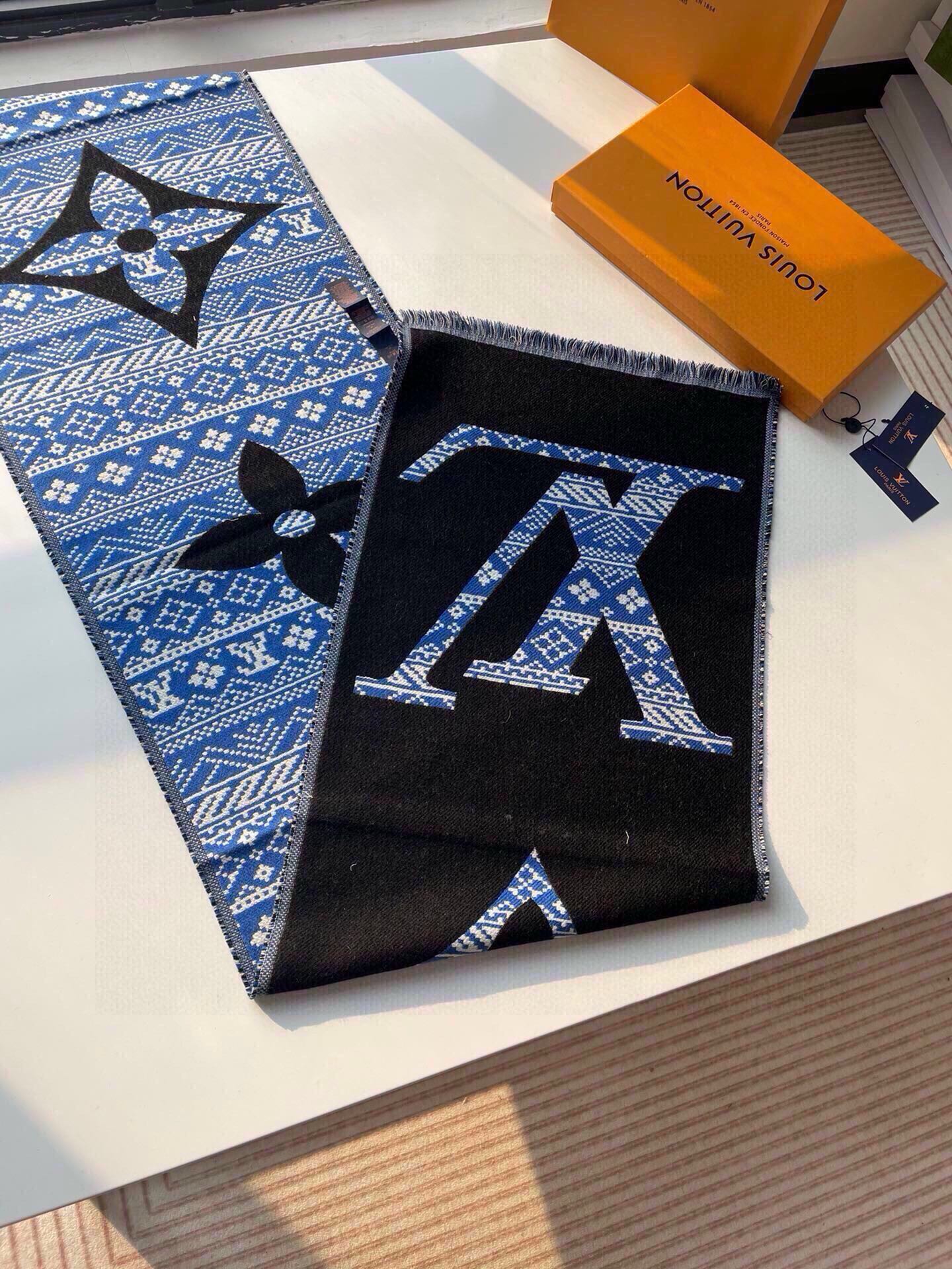 SCARF 200 CM IN BLACK MIX BLUE WOOL 390040