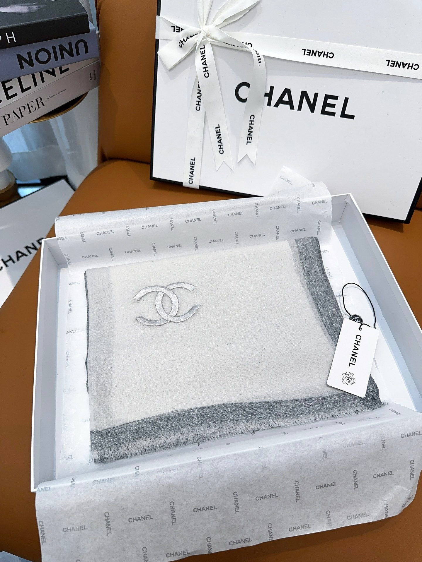 SCARF 200 CM IN DOVE GRAY MIX WHITE CASHMERE 402260