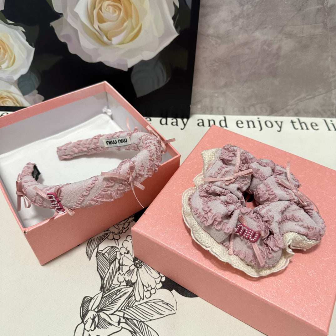 SET HEADBAND AND HAIR TIE IN LIGHT PINK FABRIC ATTACHED BOWS 432848