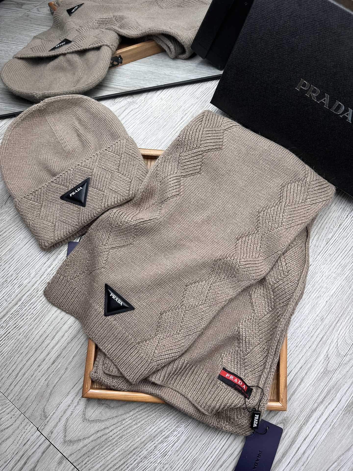 SET SCARF AND HAT IN MEDIUM BROWN WOOL AND RABBIT FUR 397406