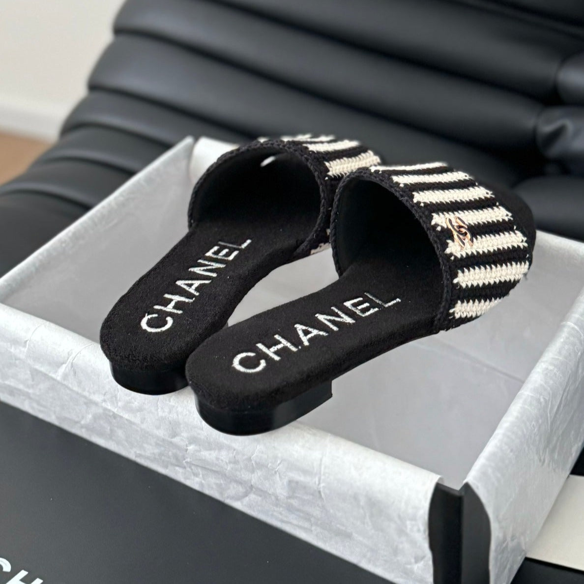 Sheepskins Knit Slippers Black White