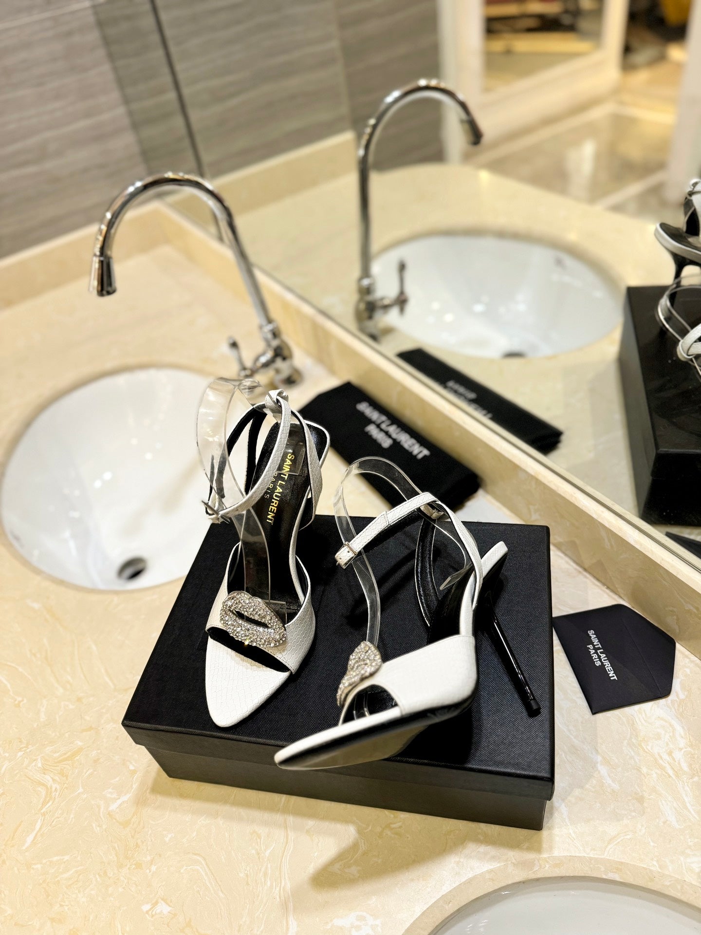 SL AYERS SNAKE CRYSTAL SANDAL WHITE CALFSKIN